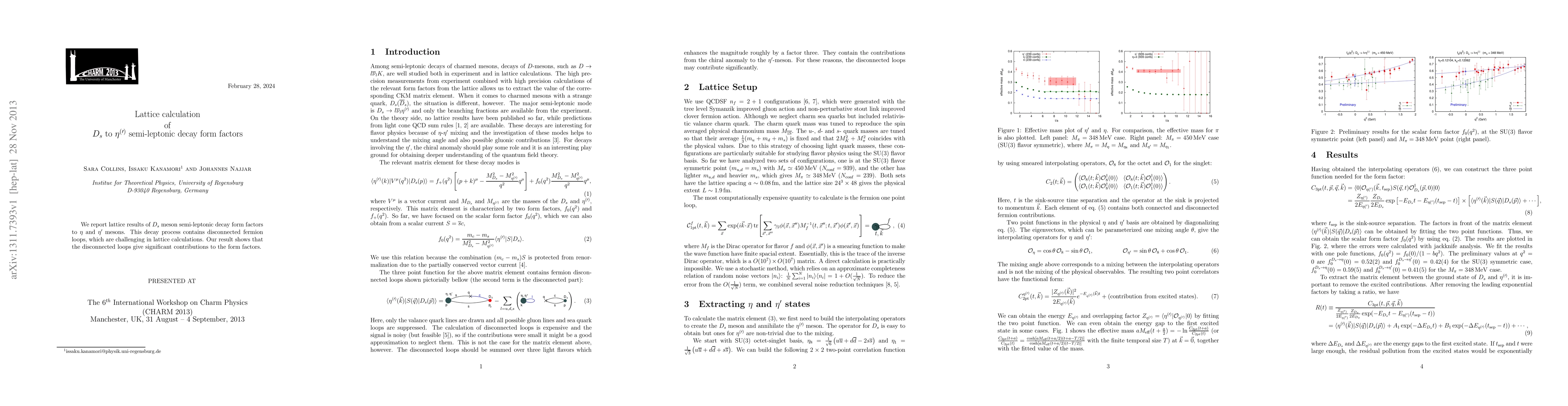 We report lattice results of $D_s$ meson semi-leptonic decay form factors to $\eta$ and $\eta'$ mesons. This decay process contains disconnected fermion loops, which are challenging in lattice calculations. Our result shows that the disconnected loops give significant contributions to the form factors.
