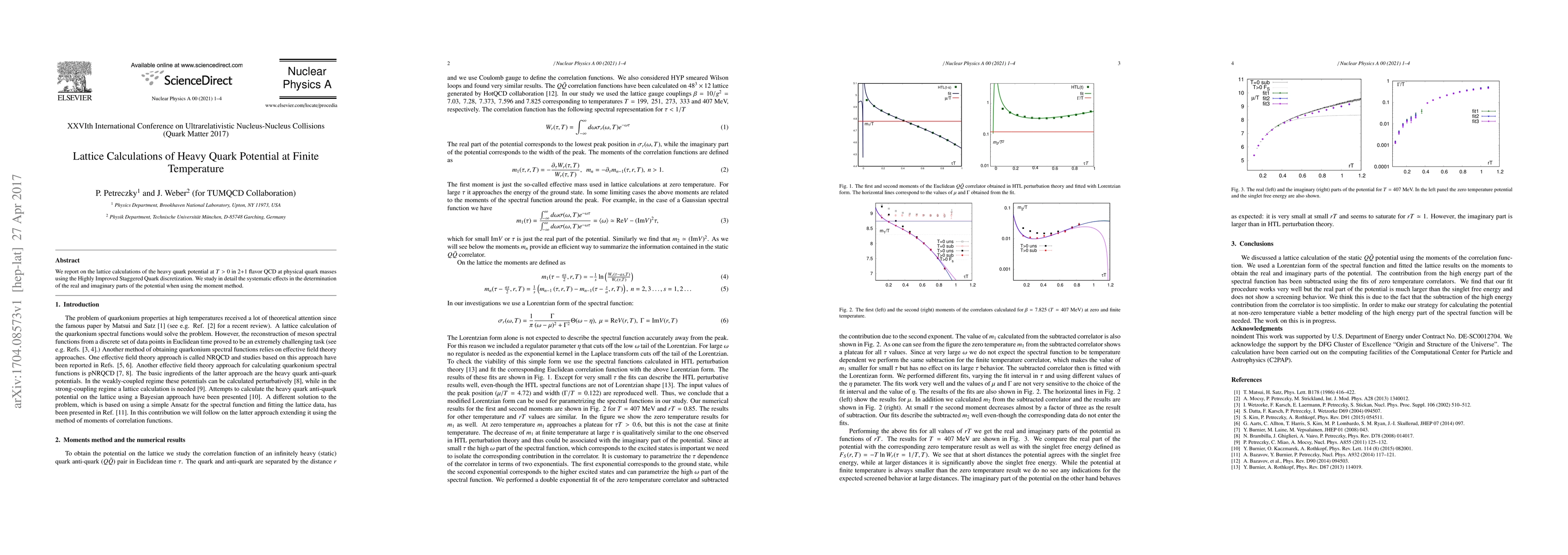 Summary: This study presents lattice calculations of the heavy quark potential in 2+1 flavor QCD at finite temperatures, employing the Highly Improved Staggered Quark discretization. It investigates systematic effects in determining the real and imaginary parts of the potential via the moment method.