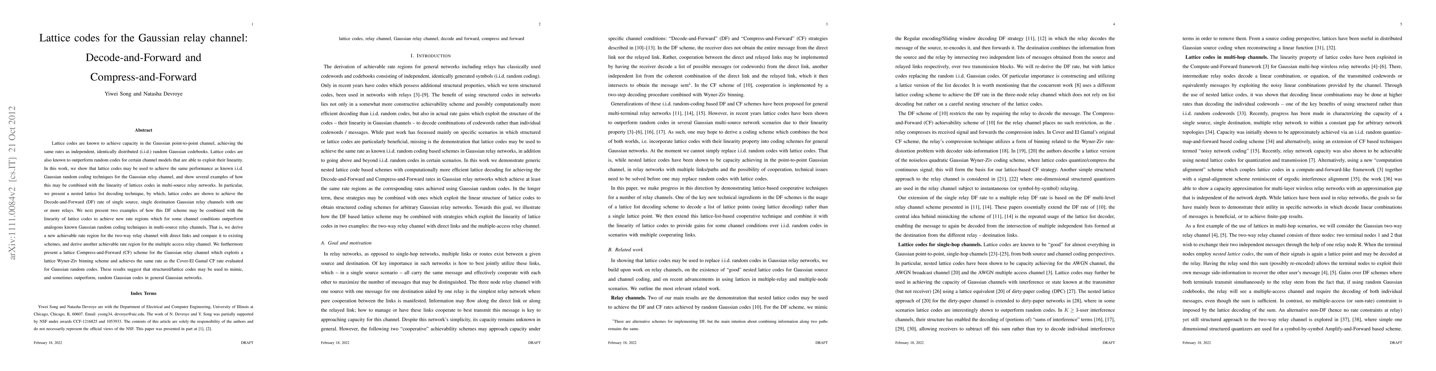 This paper explores the application of lattice codes for the Gaussian relay channel, demonstrating their effectiveness in achieving performance comparable to i.i.d. Gaussian random coding techniques. It introduces nested lattice list decoding for Decode-and-Forward schemes and presents new achievable rate regions for multi-source relay channels, showing potential for outperforming existing methods.
