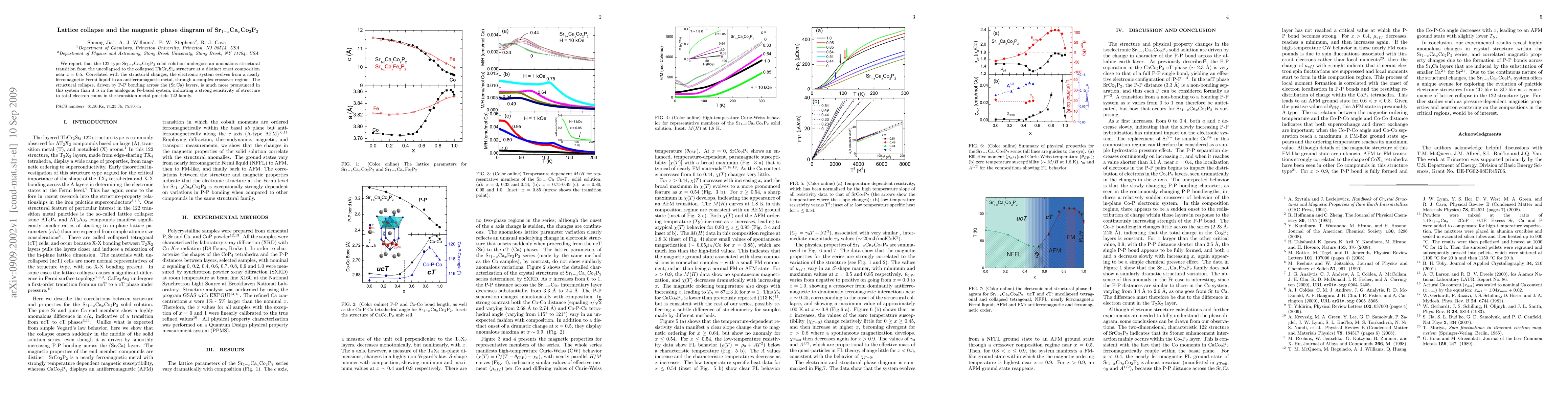 We report that the 122 type Sr$_{1-x}$Ca$_x$Co$_2$P$_2$ solid solution undergoes an anomalous structural transition from the uncollapsed to the collapsed ThCr$_2$Si$_2$ structure at a distinct onset composition near $x=0.5$. Correlated with the structural changes, the electronic system evolves from a nearly ferromagnetic Fermi liquid to an antiferromagnetic metal, through a complex crossover regime. The structural collapse, driven by P-P bonding across the (Sr,Ca) layers, is much more pronounced in this system than it is in the analogous Fe-based system, indicating a strong sensitivity of structure to total electron count in the transition metal pnictide 122 family.