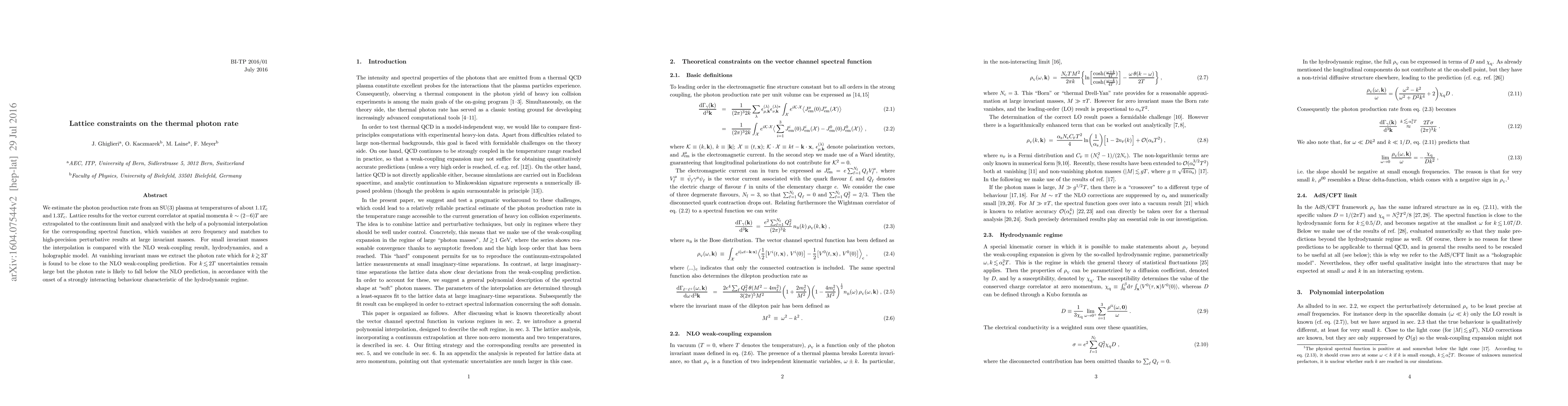 Researchers estimated photon production rates in an SU(3) plasma at high temperatures using lattice constraints and polynomial interpolation. For large invariant masses, the results matched perturbative predictions, while for small masses, they suggested a strongly interacting behavior characteristic of hydrodynamics.