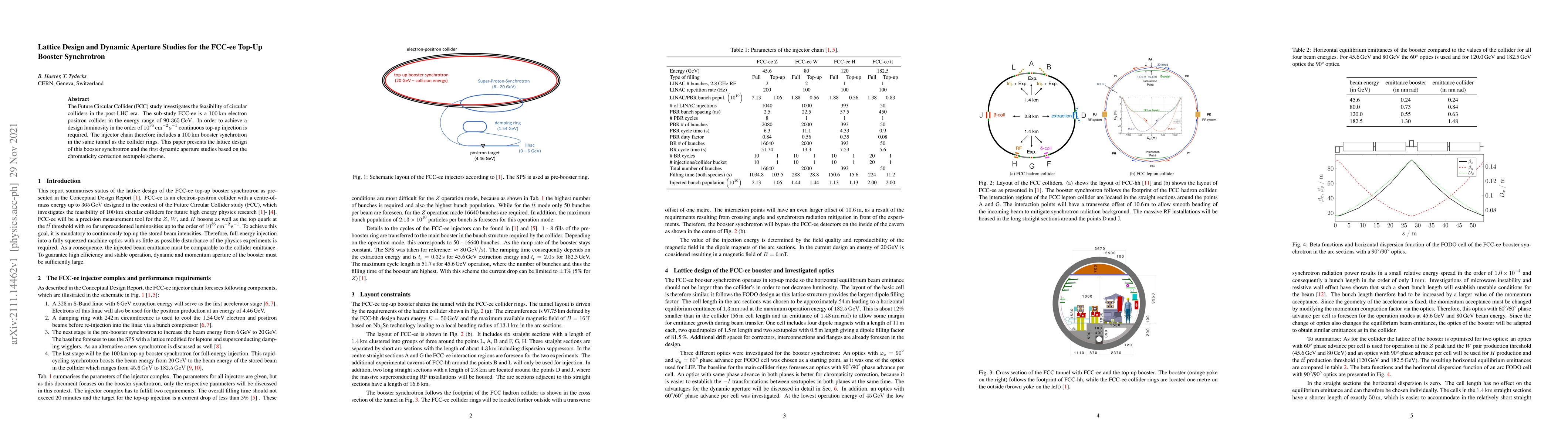 This paper details the lattice design for the FCC-ee Top-Up Booster Synchrotron, a 100 km injector for the FCC-ee collider, and conducts initial dynamic aperture studies using a chromaticity correction sextupole scheme to achieve required luminosity.