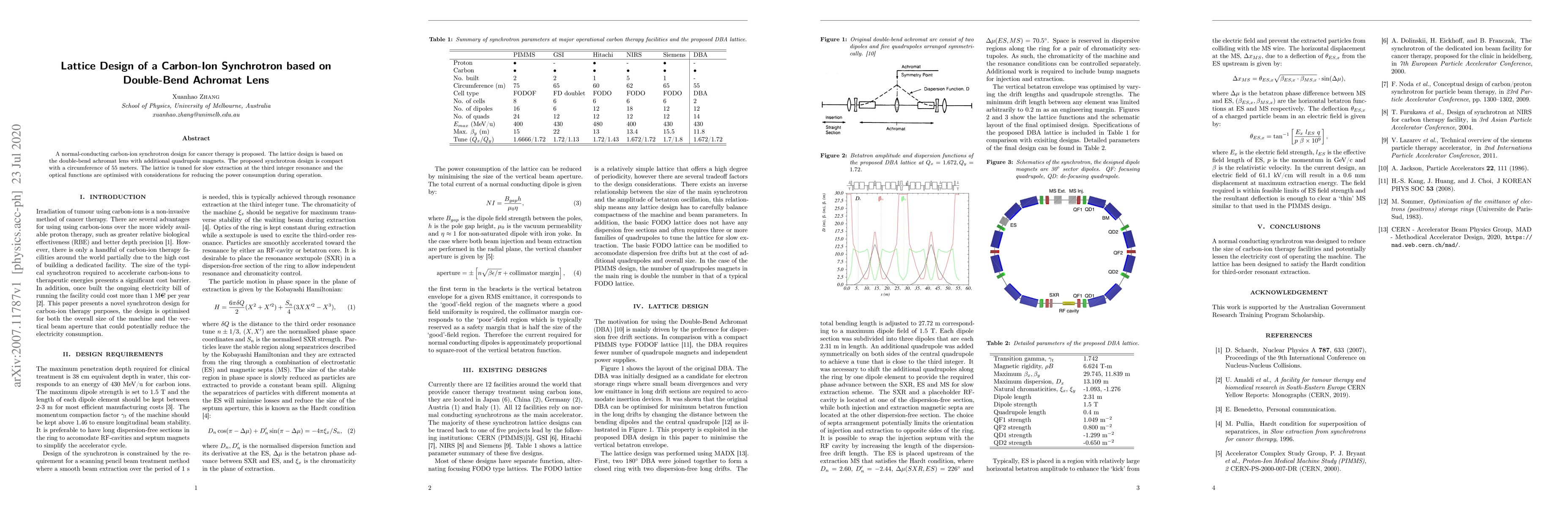 A compact carbon-ion synchrotron design is proposed using a double-bend achromat lens with quadrupole magnets, aiming to reduce power consumption in cancer therapy treatment.