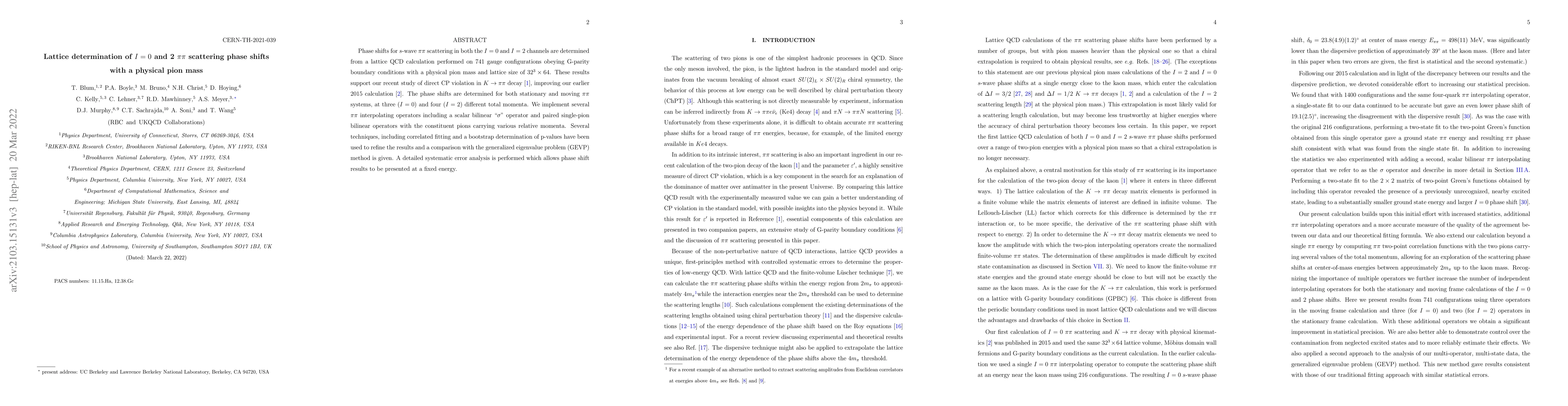 This paper reports lattice QCD calculations determining the $I=0$ and $I=2$ $s$-wave $\pi\pi$ scattering phase shifts with a physical pion mass, improving upon earlier results and supporting studies of direct CP violation in $K\to\pi\pi$ decay. The phase shifts are analyzed for various total momenta and interpolating operators, with systematic error analysis ensuring results at a fixed energy.