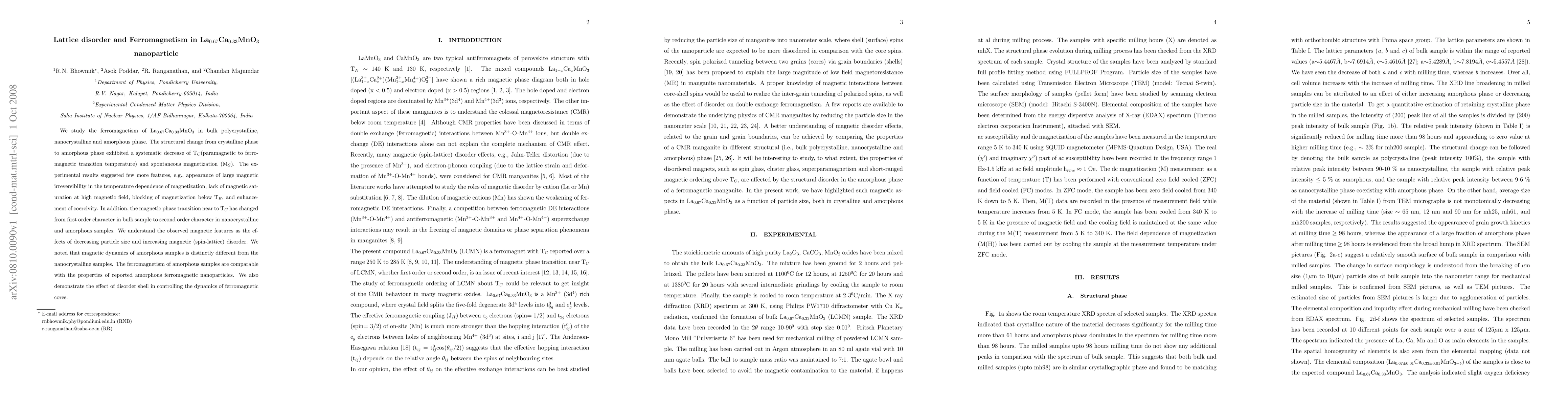 We study the ferromagnetism of La0.67Ca0.33MnO3 in bulk polycrystalline, nanocrystalline and amorphous phase. The structural change from crystalline phase to amorphous phase exhibited a systematic decrease of TC(paramagnetic to ferromagnetic transition temperature) and spontaneous magnetization (MS). The experimental results suggested few more features, e.g., appearance of large magnetic irreversibility in the temperature dependence of magnetization, lack of magnetic saturation at high magnetic field, blocking of magnetization below TB, and enhancement of coercivity. In addition, the magnetic phase transition near to TC has changed from first order character in bulk sample to second order character in nanocrystalline and amorphous samples. We understand the observed magnetic features as the effects of decreasing particle size and increasing magnetic (spin- lattice) disorder. We noted that magnetic dynamics of amorphous samples is distinctly different from the nanocrystalline samples. The ferromagnetism of amorphous samples are comparable with the properties of reported amorphous ferromagnetic nanoparticles. We also demonstrate the effect of disorder shell in controlling the dynamics of ferromagnetic cores.