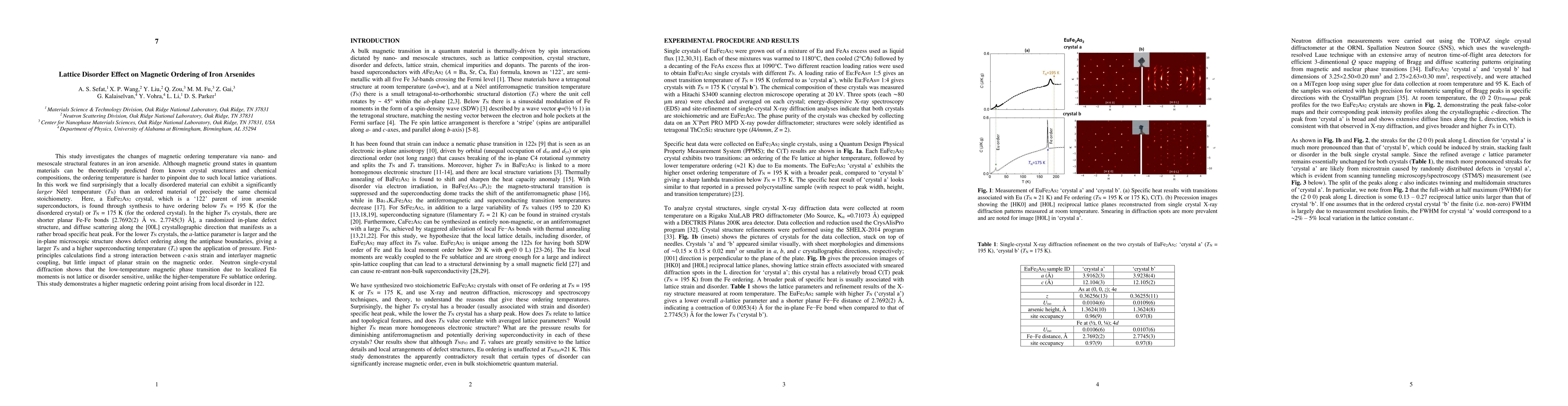 This study reveals that lattice disorder in EuFe2As2 iron arsenide crystals can significantly increase the Neel temperature (TN) compared to ordered counterparts, despite identical chemical compositions. Disordered crystals exhibit TN = 195 K, while ordered ones show TN = 175 K, highlighting the influence of local structural variations on magnetic ordering.