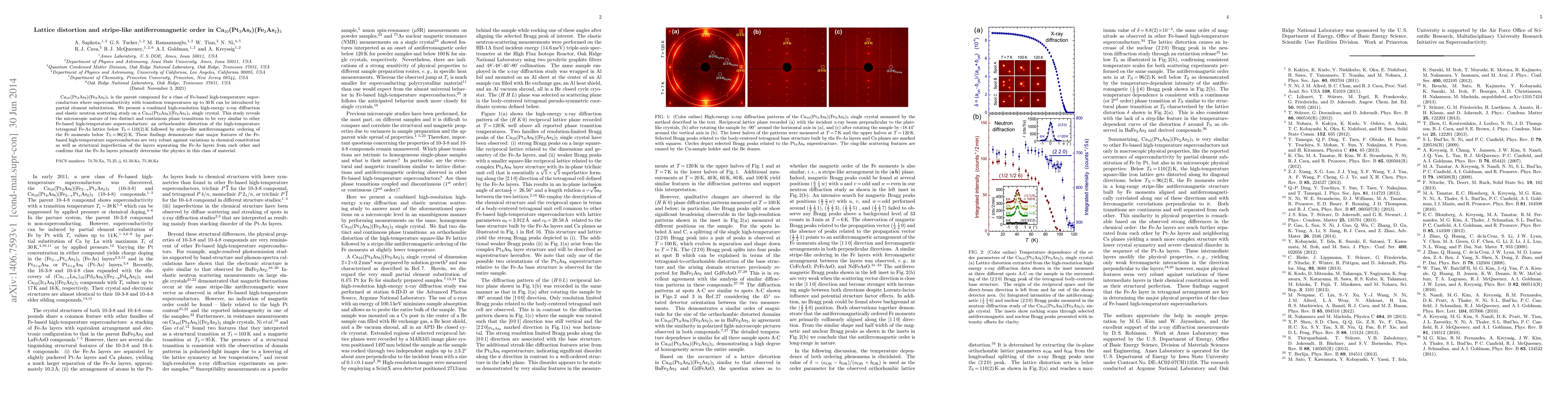 This study reveals lattice distortion and stripe-like antiferromagnetic order in Ca10(Pt3As8)(Fe2As2)5, a parent compound for Fe-based high-temperature superconductors. The research identifies two phase transitions, confirming the robustness of Fe-As layers in determining the material's physics.