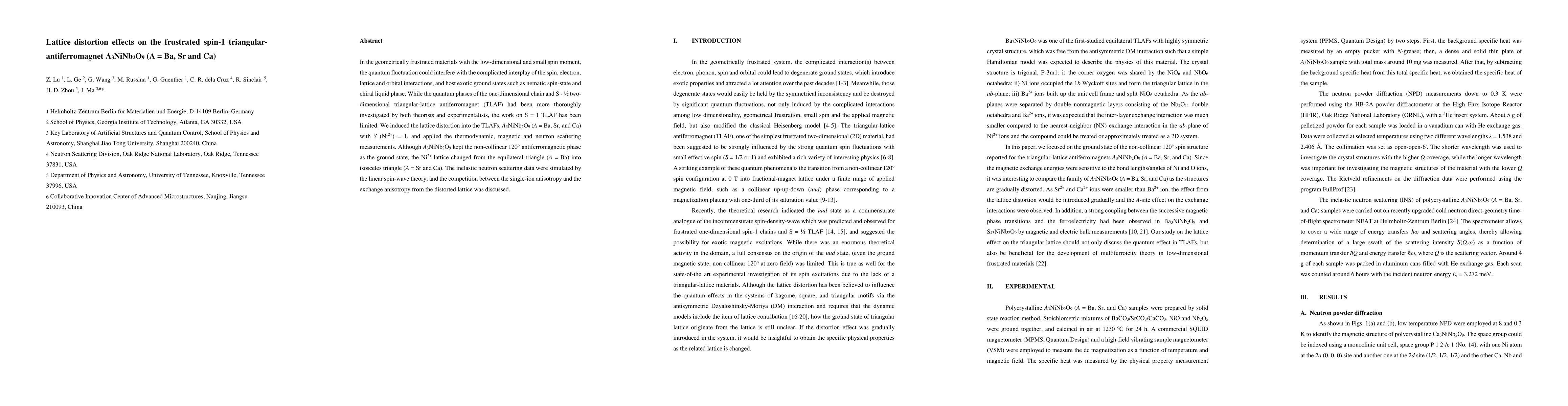 In the geometrically frustrated materials with the low-dimensional and small spin moment, the quantum fluctuation could interfere with the complicated interplay of the spin, electron, lattice and orbital interactions, and host exotic ground states such as nematic spin-state and chiral liquid phase. While the quantum phases of the one-dimensional chain and S - 1/2 two-dimensional triangular-lattice antiferromagnet (TLAF) had been more thoroughly investigated by both theorists and experimentalists, the work on S = 1 TLAF has been limited. We induced the lattice distortion into the TLAFs, A3NiNb2O9 (A = Ba, Sr, and Ca) with S (Ni2+) = 1, and applied the thermodynamic, magnetic and neutron scattering measurements. Although A3NiNb2O9 kept the non-collinear 120{\deg} antiferromagnetic phase as the ground state, the Ni2+-lattice changed from the equilateral triangle (A = Ba) into isosceles triangle (A = Sr and Ca). The inelastic neutron scattering data were simulated by the linear spin-wave theory, and the competition between the single-ion anisotropy and the exchange anisotropy from the distorted lattice was discussed.