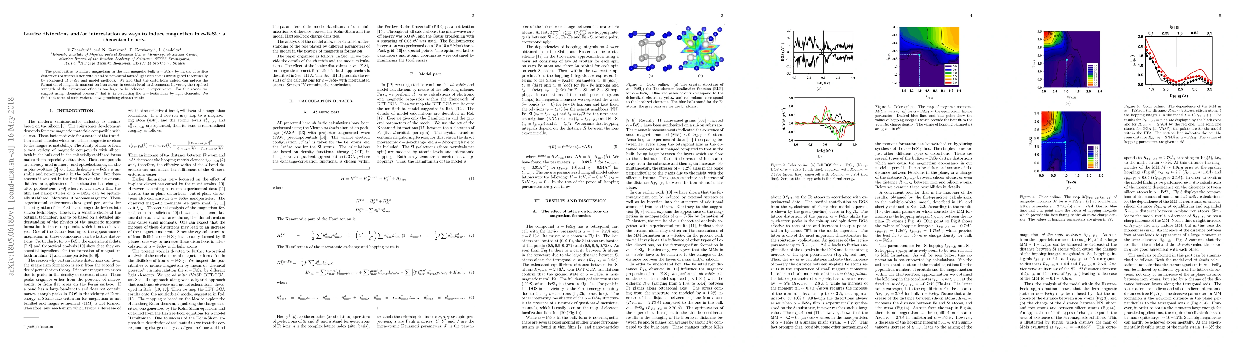This study investigates theoretically how lattice distortions and intercalation can induce magnetism in non-magnetic alpha-FeSi2. While lattice distortions can create magnetic moments, they require impractically large forces. Instead, intercalation with light elements shows promising results for inducing magnetism.