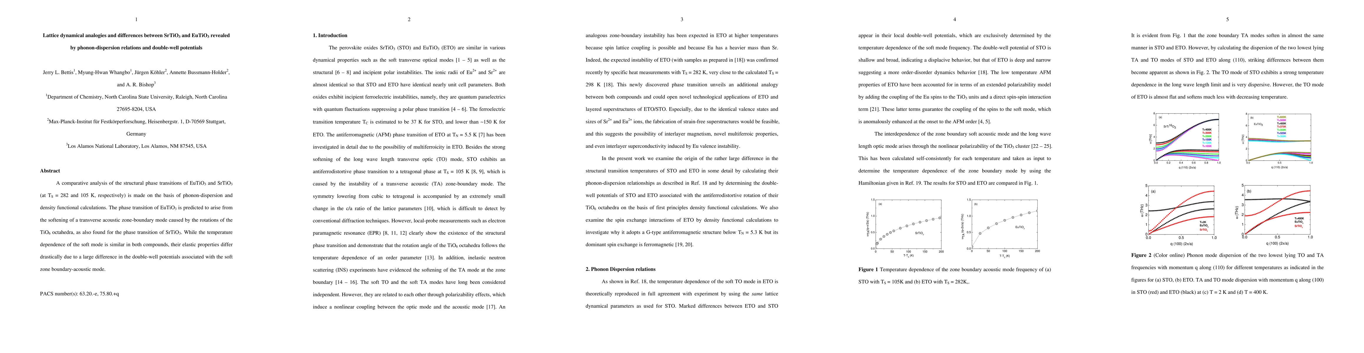 This paper compares the structural phase transitions of EuTiO3 and SrTiO3 using phonon-dispersion relations and density functional calculations. Both materials exhibit phase transitions driven by the softening of a transverse acoustic mode due to octahedra rotations, but differ significantly in their elastic properties due to variations in their double-well potentials.