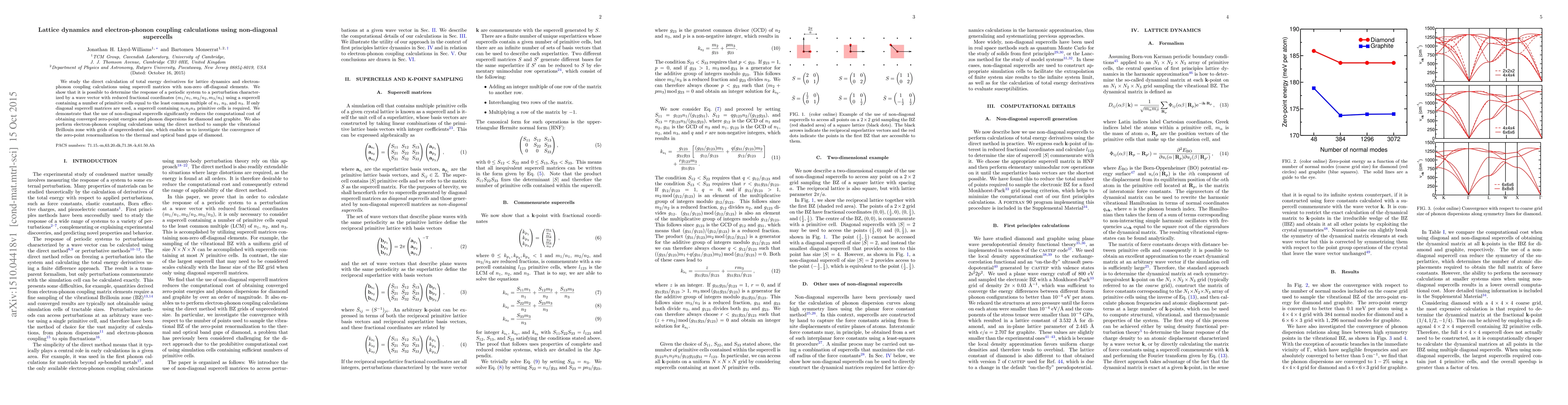 This paper explores the use of non-diagonal supercells to calculate lattice dynamics and electron-phonon coupling, demonstrating reduced computational costs compared to traditional diagonal supercells. The method allows for efficient sampling of the vibrational Brillouin zone, enabling detailed studies of zero-point renormalization in materials like diamond and graphite.