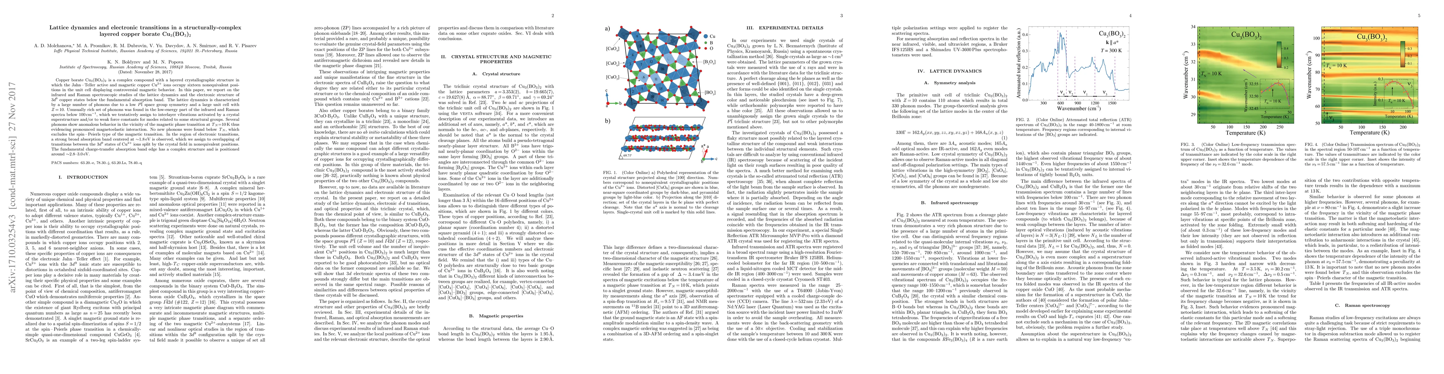 This study provides insights into the lattice dynamics and electronic transitions of a structurally complex copper borate, which could contribute to understanding similar compounds and their magnetic behavior.