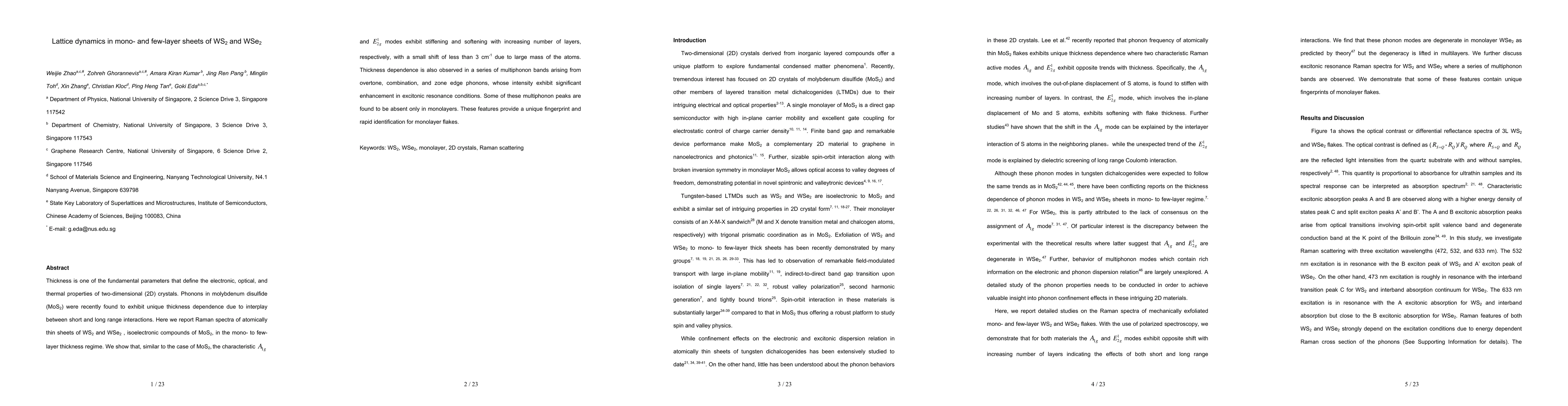 This paper investigates the lattice dynamics in mono- and few-layer sheets of WS2 and WSe2 through Raman spectroscopy, revealing thickness-dependent phonon stiffening and softening similar to MoS2, with multiphonon bands enhancing in resonance conditions, enabling monolayer identification.