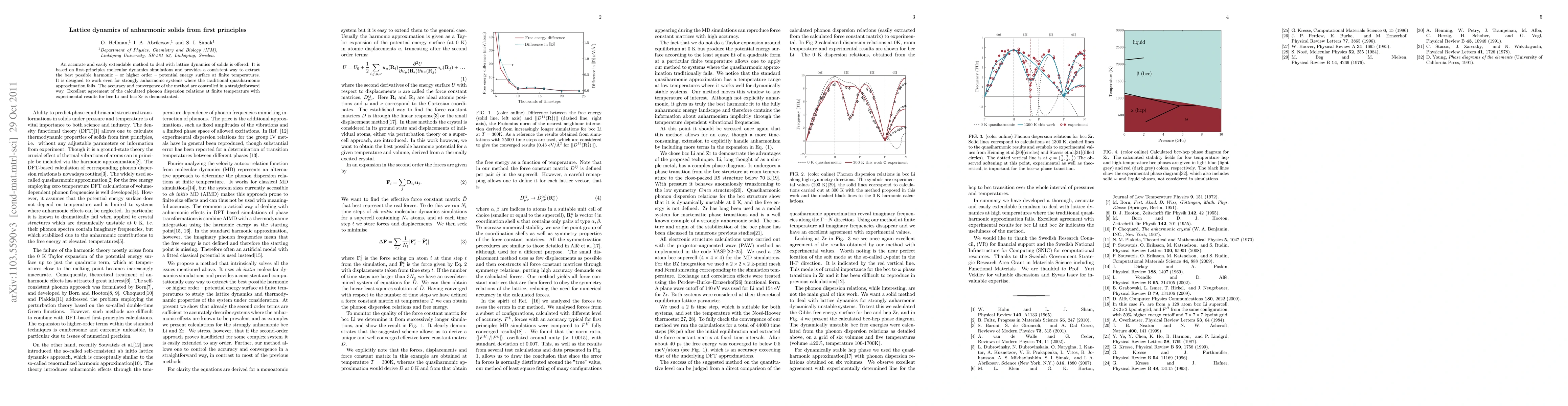 This paper presents a first-principles method for accurately modeling lattice dynamics in anharmonic solids, offering a reliable approach to extract harmonic and higher-order potential energy surfaces at finite temperatures. The method demonstrates excellent agreement with experimental phonon dispersion data for bcc Li and bcc Zr.