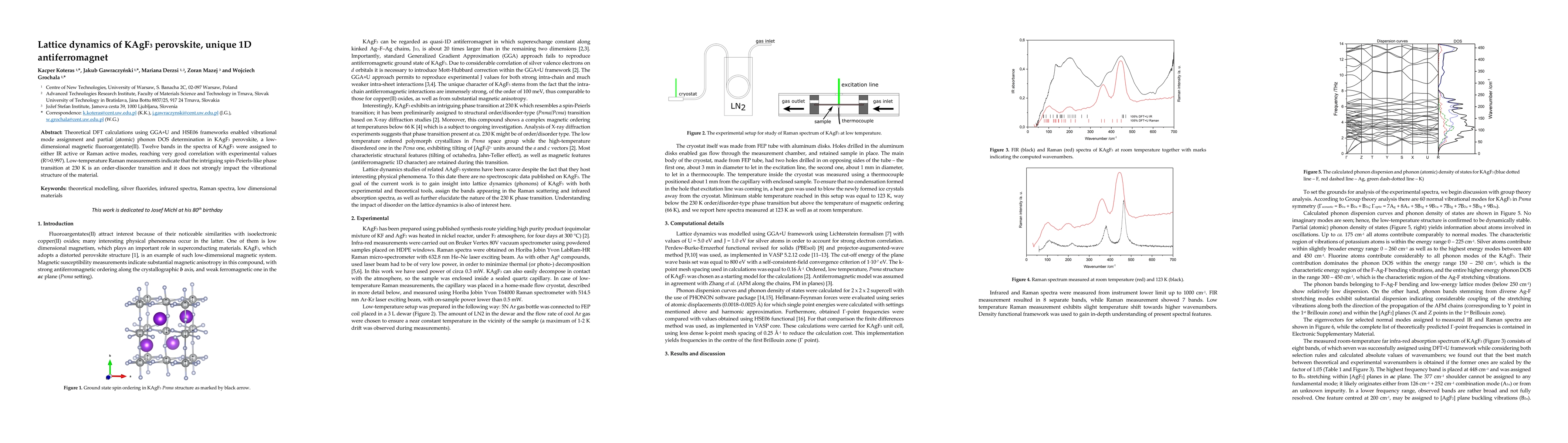 Theoretical DFT calculations using GGA+U and HSE06 frameworks enabled vibrational mode assignment and partial (atomic) phonon DOS determination in KAgF3 perovskite, a low-dimensional magnetic fluoroargentate(II). Twelve bands in the spectra of KAgF3 were assigned to either IR active or Raman active modes, reaching very good correlation with experimental values (R2>0.997). Low-temperature Raman measurements indicate that the intriguing spin-Peierls-like phase transition at 230 K is an order-disorder transition and it does not strongly impact the vibrational structure of the material.