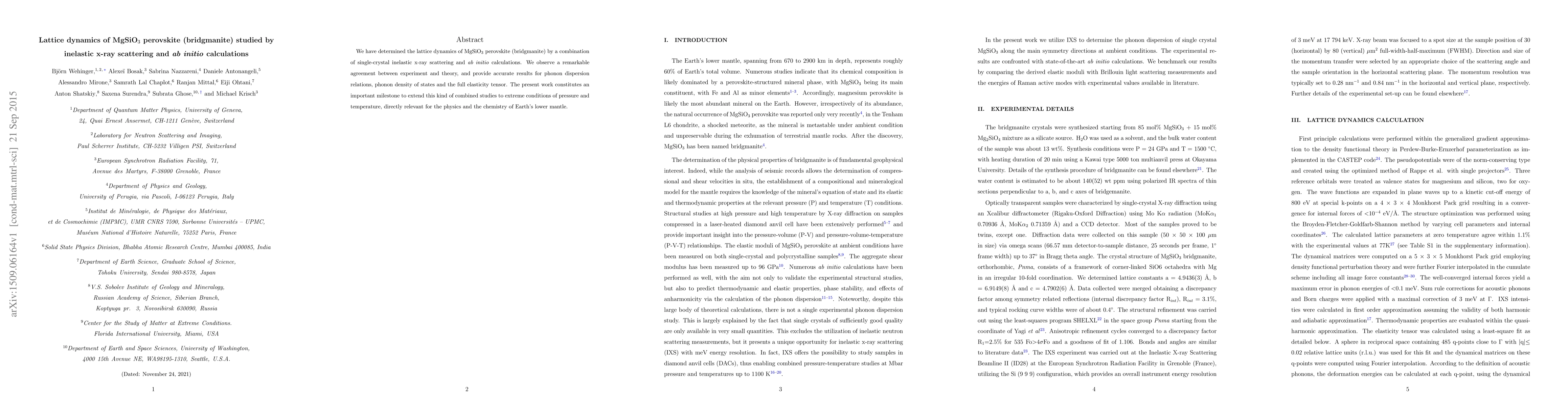 The study combined single-crystal inelastic X-ray scattering (IXS) with ab initio calculations to determine the lattice dynamics of MgSiO3 perovskite (bridgmanite).
