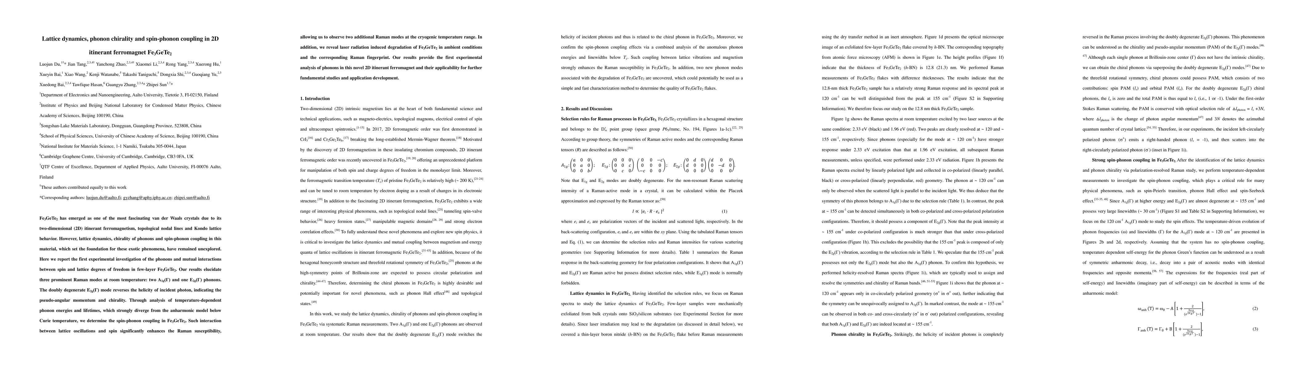 The research presents a comprehensive experimental investigation of phonons and their interactions with spin in few-layer Fe3GeTe2, uncovering chirality in Raman active modes and demonstrating spin-phonon coupling.