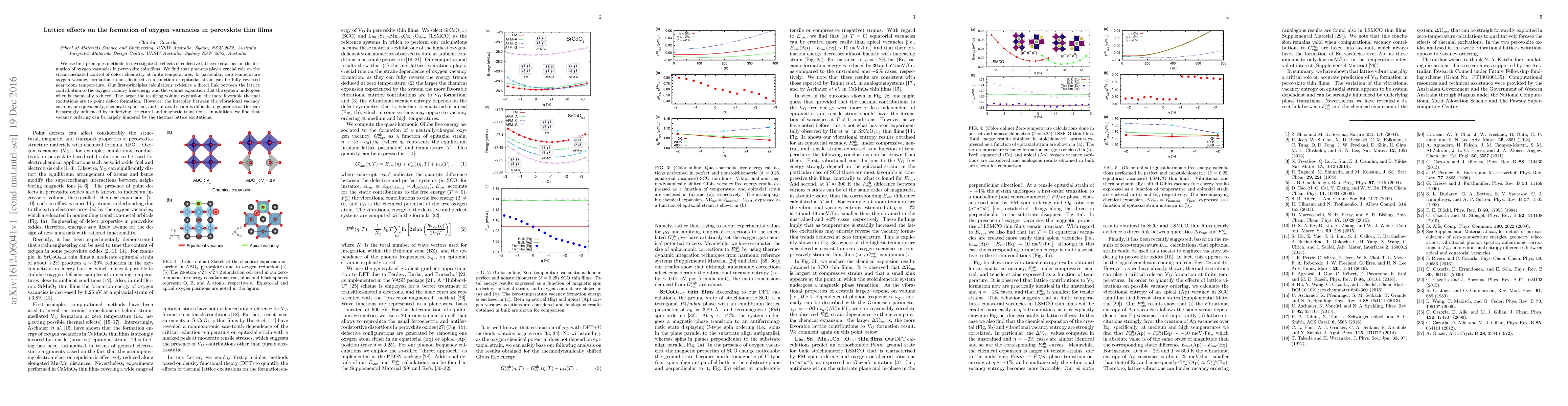 This study uses first-principles methods to explore how lattice excitations, particularly phonons, influence oxygen vacancy formation in perovskite thin films. It reveals that phonons reverse zero-temperature vacancy formation trends near room temperature, linking vacancy free energy to the volume expansion upon chemical reduction.