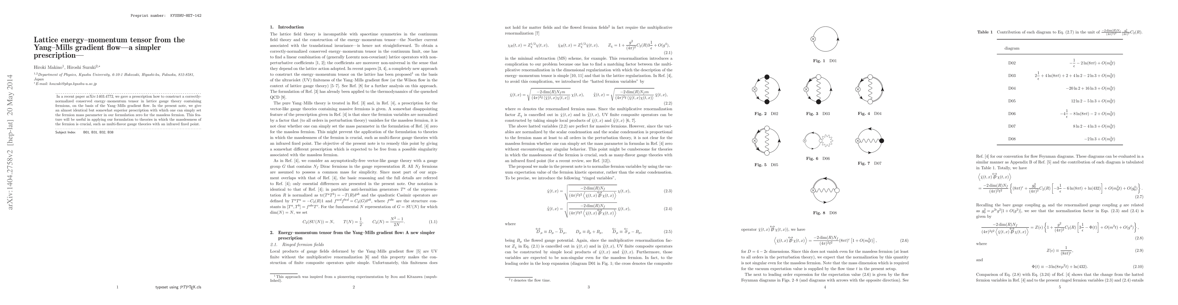 In a recent paper [arXiv:1403.4772], we gave a prescription how to construct a correctly-normalized conserved energy--momentum tensor in lattice gauge theory containing fermions, on the basis of the Yang--Mills gradient flow. In the present note, we give an almost identical but somewhat superior prescription with which one can simply set the fermion mass parameter in our formulation zero for the massless fermion. This feature will be useful in applying our formulation to theories in which the masslessness of the fermion is crucial, such as multi-flavor gauge theories with an infrared fixed point.