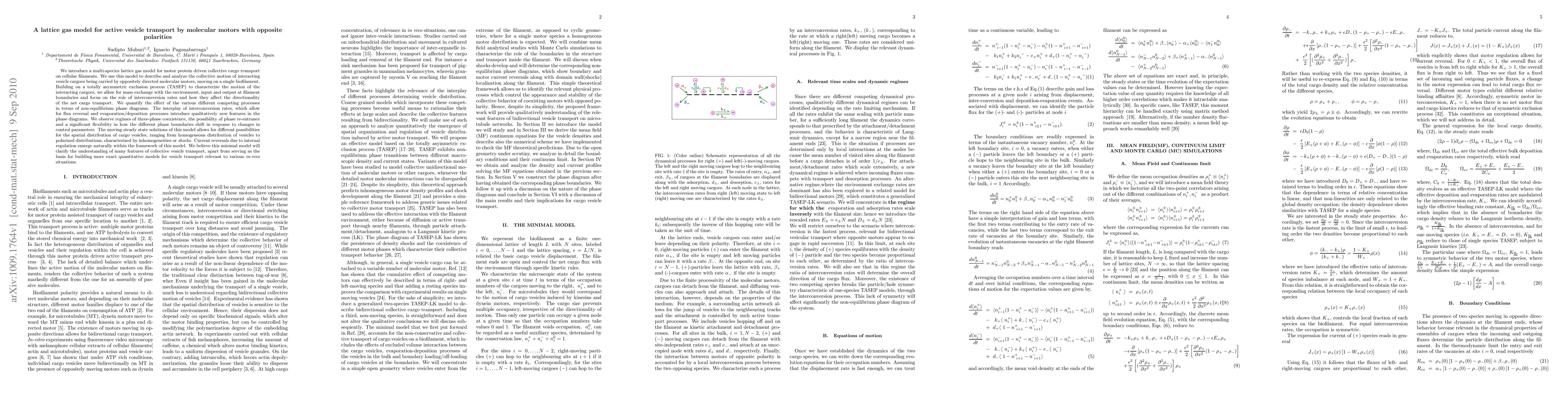 We introduce a multi-species lattice gas model for motor protein driven collective cargo transport on cellular filaments. We use this model to describe and analyze the collective motion of interacting vesicle cargoes being carried by oppositely directed molecular motors, moving on a single biofilament. Building on a totally asymmetric exclusion process (TASEP) to characterize the motion of the interacting cargoes, we allow for mass exchange with the environment, input and output at filament boundaries and focus on the role of interconversion rates and how they affect the directionality of the net cargo transport. We quantify the effect of the various different competing processes in terms of non-equilibrium phase diagrams. The interplay of interconversion rates, which allow for flux reversal and evaporation/deposition processes introduce qualitatively new features in the phase diagrams. We observe regimes of three-phase coexistence, the possibility of phase re-entrance and a significant flexibility in how the different phase boundaries shift in response to changes in control parameters. The moving steady state solutions of this model allows for different possibilities for the spatial distribution of cargo vesicles, ranging from homogeneous distribution of vesicles to polarized distributions, characterized by inhomogeneities or {\it shocks}. Current reversals due to internal regulation emerge naturally within the framework of this model. We believe this minimal model will clarify the understanding of many features of collective vesicle transport, apart from serving as the basis for building more exact quantitative models for vesicle transport relevant to various {\it in-vivo} situations.