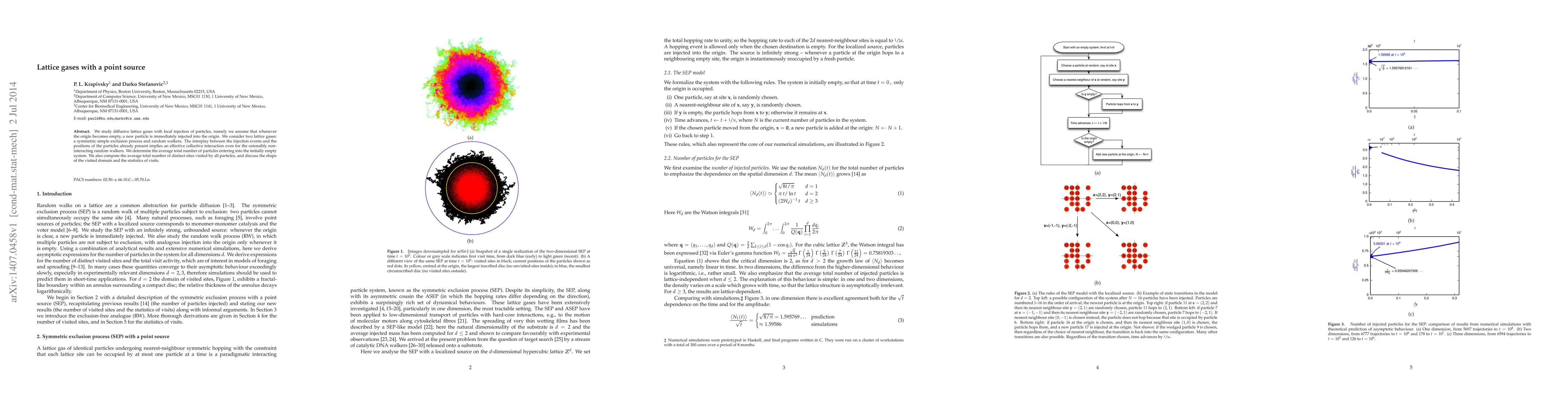 This paper investigates diffusive lattice gases with continuous particle injection, focusing on both a symmetric simple exclusion process and random walkers. It reveals an effective collective interaction due to the interplay between injection and existing particles, determining the average total number of particles and distinct sites visited.