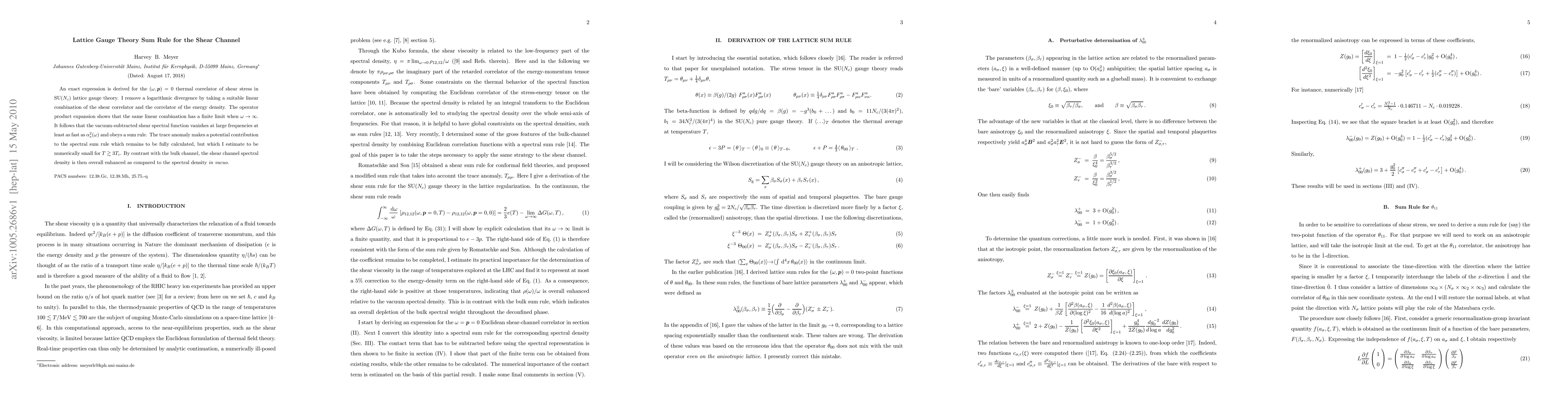 Researchers derived an exact expression for the thermal correlator of shear stress in SU(N_c) lattice gauge theory, showing that the vacuum-subtracted spectral function vanishes at large frequencies faster than a specific power of the strong coupling constant.