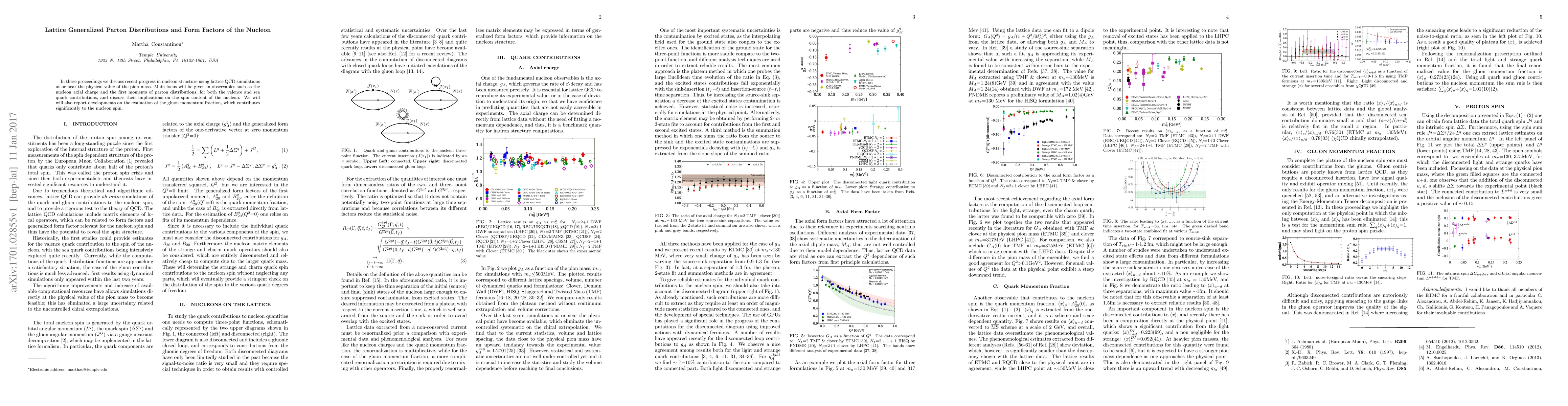 In these proceedings we discuss recent progress in nucleon structure using lattice QCD simulations at or near the physical value of the pion mass. Main focus will be given in observables such as the nucleon axial charge and the first moments of parton distributions, for both the valence and sea quark contributions, and discuss their implications on the spin content of the nucleon. We will will also report developments on the evaluation of the gluon momentum fraction, which contributes significantly to the nucleon spin.