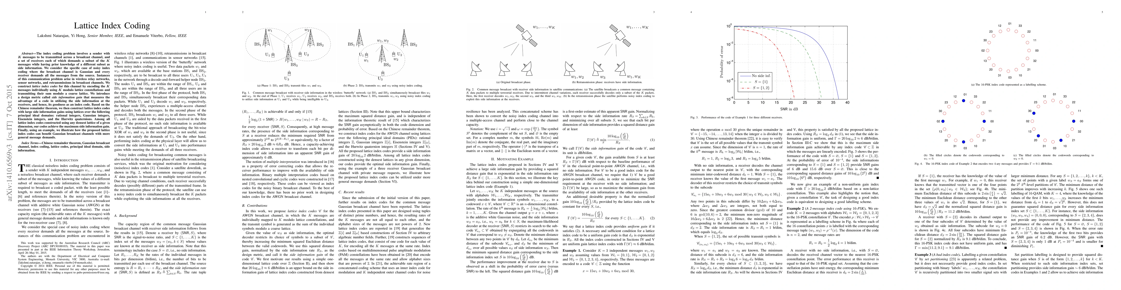 The index coding problem involves a sender with K messages to be transmitted across a broadcast channel, and a set of receivers each of which demands a subset of the K messages while having prior knowledge of a different subset as side information. We consider the specific case of noisy index coding where the broadcast channel is Gaussian and every receiver demands all the messages from the source. Instances of this communication problem arise in wireless relay networks, sensor networks, and retransmissions in broadcast channels. We construct 'lattice index codes' for this channel by encoding the K messages individually using K modulo lattice constellations and transmitting their sum modulo a coarse lattice. We introduce a design metric called 'side information gain' that measures the advantage of a code in utilizing the side information at the receivers, and hence its goodness as an index code. Based on the Chinese remainder theorem, we then construct lattice index codes with large side information gains using lattices over the following principal ideal domains: rational integers, Gaussian integers, Eisenstein integers, and the Hurwitz quaternions. Among all lattice index codes constructed using any densest lattice of a given dimension, our codes achieve the maximum side information gain. Finally, using an example, we illustrate how the proposed lattice index codes can benefit Gaussian broadcast channels with more general message demands.
