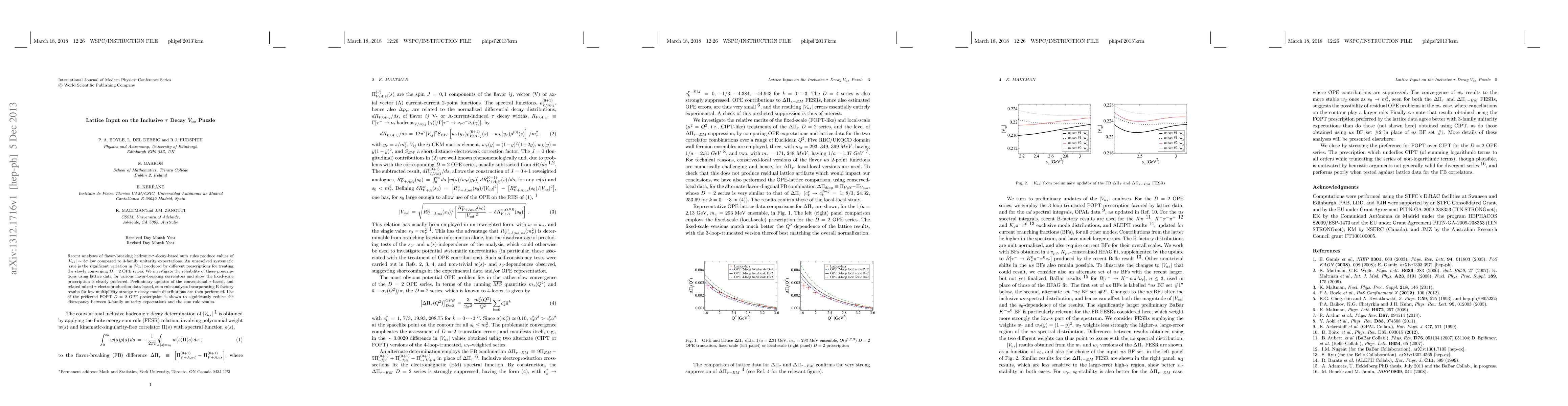 This paper investigates the discrepancy in $\vert V_{us}\vert$ values from $\tau$ decay sum rules, finding that the fixed-scale prescription for treating the $D=2$ OPE series is most reliable using lattice data. Incorporating B-factory results and the preferred prescription significantly reduces the $\vert V_{us}\vert$ discrepancy from 3-family unitarity expectations.