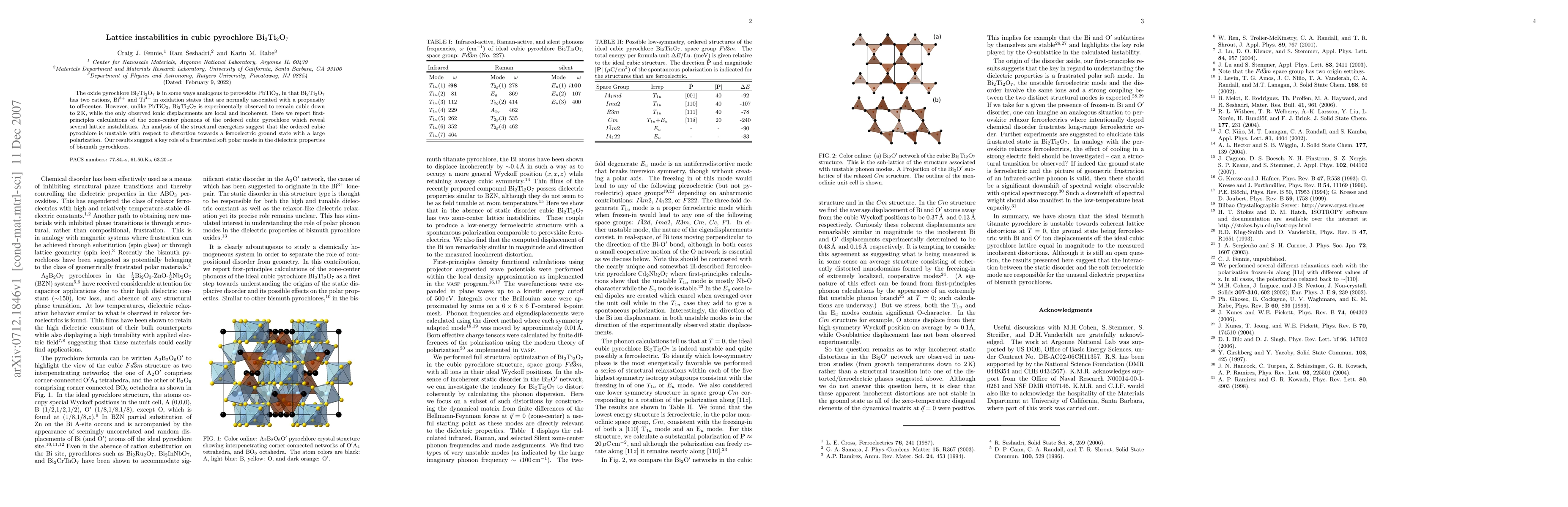 The oxide pyrochlore Bi$_2$Ti$_2$O$_7$ is in some ways analogous to perovskite PbTiO$_3$, in that Bi$_2$Ti$_2$O$_7$ has two cations, Bi$^{3+}$ and Ti$^{4+}$ in oxidation states that are normally associated with a propensity to off-center. However, unlike PbTiO$_3$, Bi$_2$Ti$_2$O$_7$ is experimentally observed to remain cubic down to 2 K, while the only observed ionic displacements are local and incoherent. Here we report first-principles calculations of the zone-center phonons of the ordered cubic pyrochlore which reveal several lattice instabilities. An analysis of the structural energetics suggest that the ordered cubic pyrochlore is unstable with respect to distortion towards a ferroelectric ground state with a large polarization. Our results suggest a key role of a frustrated soft polar mode in the dielectric properties of bismuth pyrochlores.