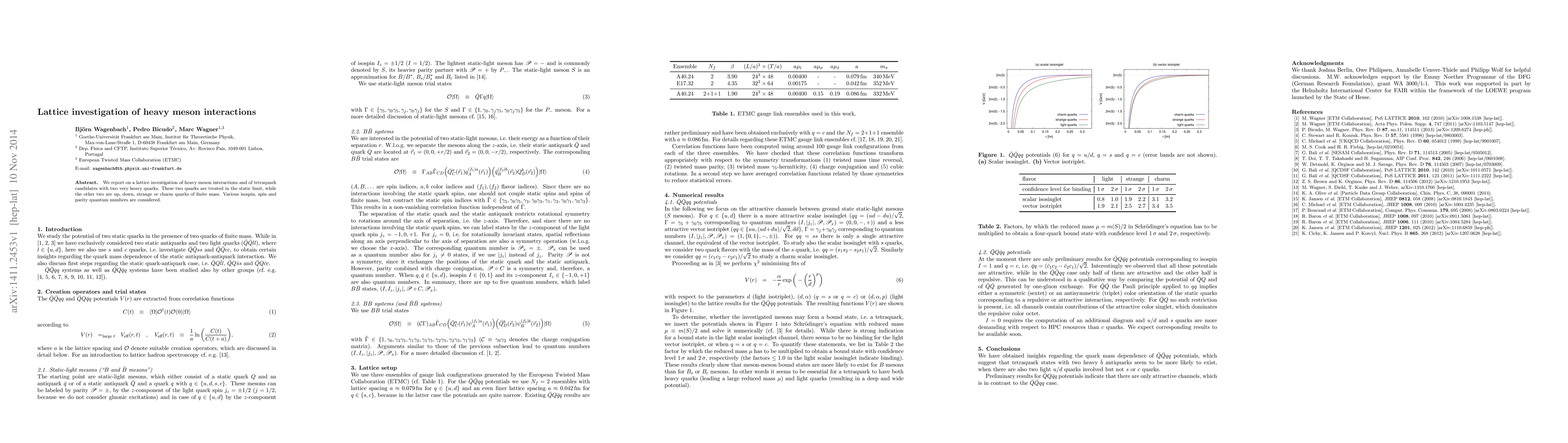 We report on a lattice investigation of heavy meson interactions and of tetraquark candidates with two very heavy quarks. These two quarks are treated in the static limit, while the other two are up, down, strange or charm quarks of finite mass. Various isospin, spin and parity quantum numbers are considered.