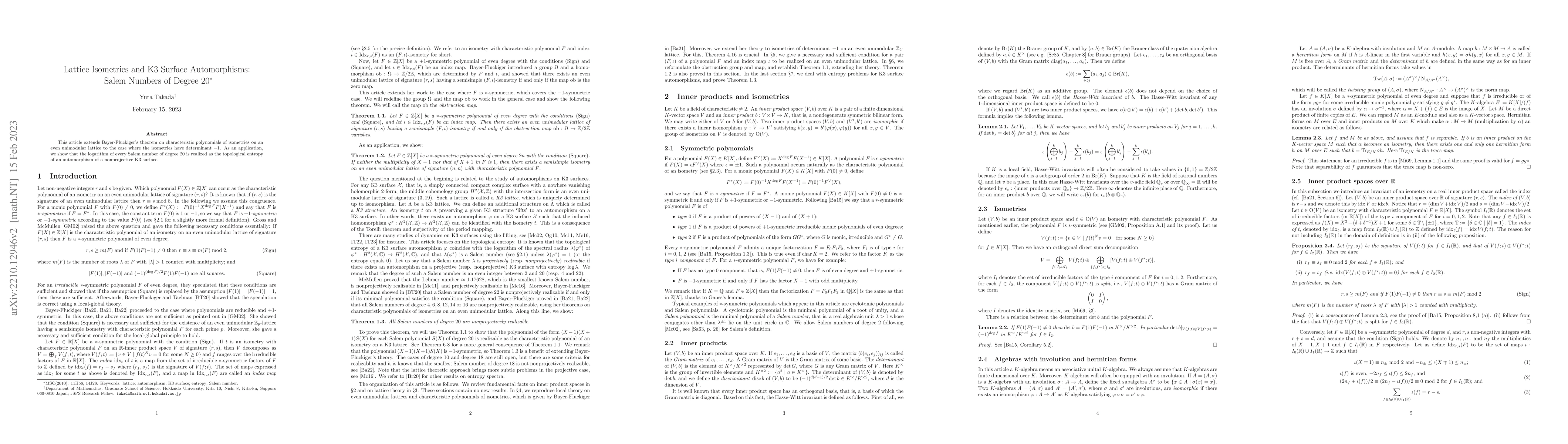 This paper extends a theorem on characteristic polynomials of lattice isometries to include those with determinant $-1$, demonstrating that the logarithm of every Salem number of degree 20 corresponds to the entropy of an automorphism of a nonprojective K3 surface.