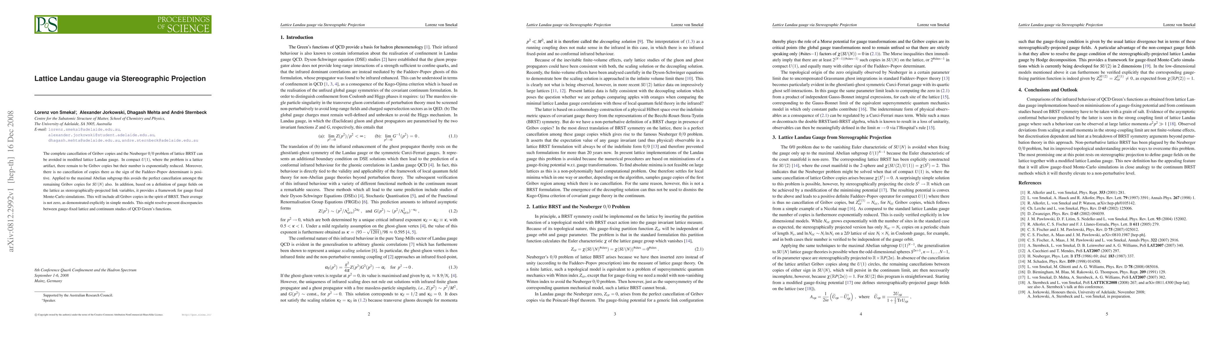 This paper proposes a modified lattice Landau gauge using stereographic projection to avoid Gribov copies and the Neuberger 0/1 problem in lattice BRST. It demonstrates that this approach reduces the number of Gribov copies and provides a framework for gauge-fixed Monte-Carlo simulations, potentially resolving discrepancies in QCD Green's functions studies.