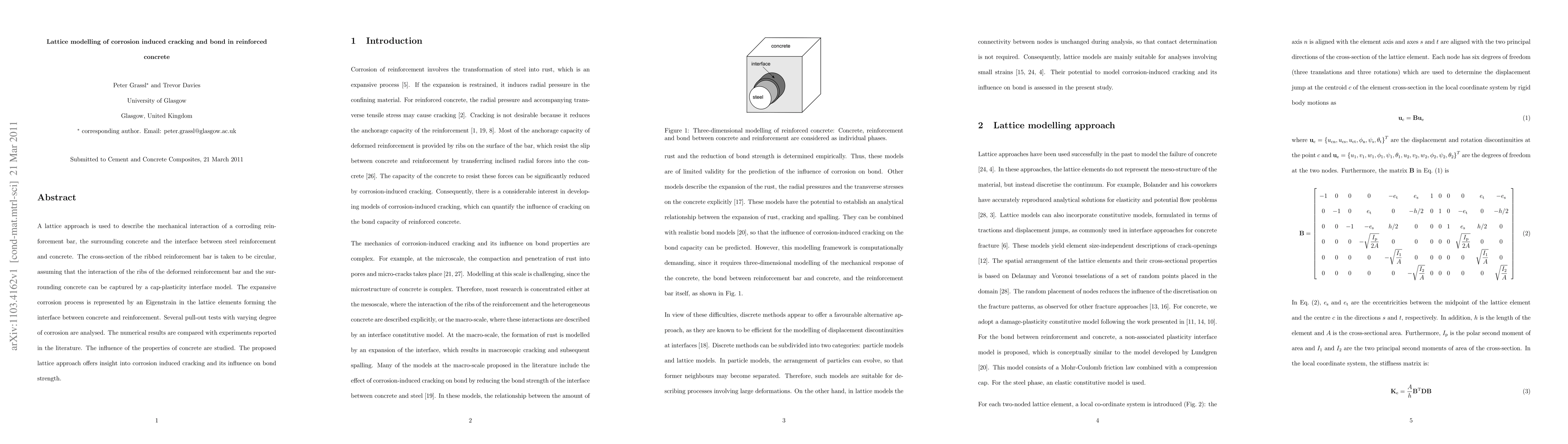 This paper employs a lattice model to analyze the mechanical interaction between corroding reinforcement bars, surrounding concrete, and the interface between them. The study investigates the impact of corrosion on bond strength through numerical simulations and compares results with experimental data, highlighting the influence of concrete properties on corrosion-induced cracking.