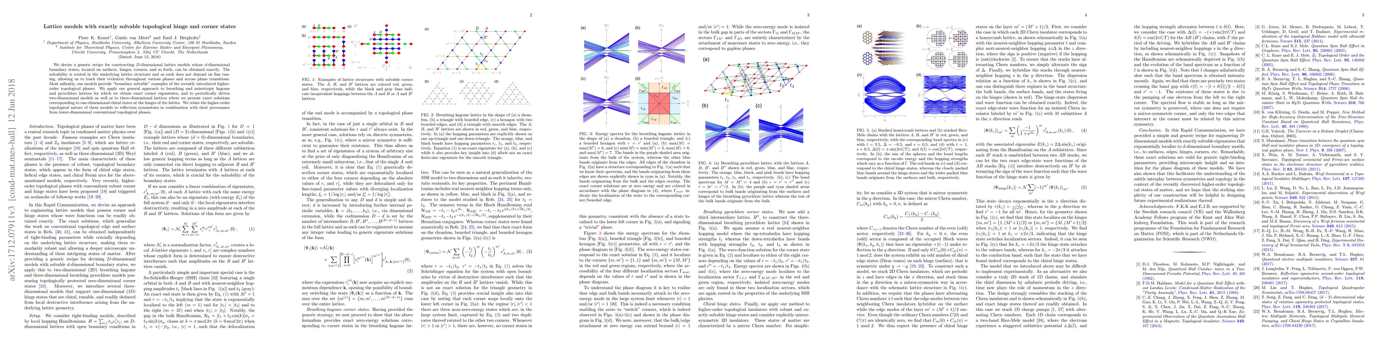 This paper presents a method for constructing $D$-dimensional lattice models with exactly solvable topological hinge and corner states, rooted in the lattice structure. The models provide exact solutions for boundary states and reveal higher-order topological phases, demonstrated through breathing and anisotropic kagome and pyrochlore lattices, and periodically driven systems.