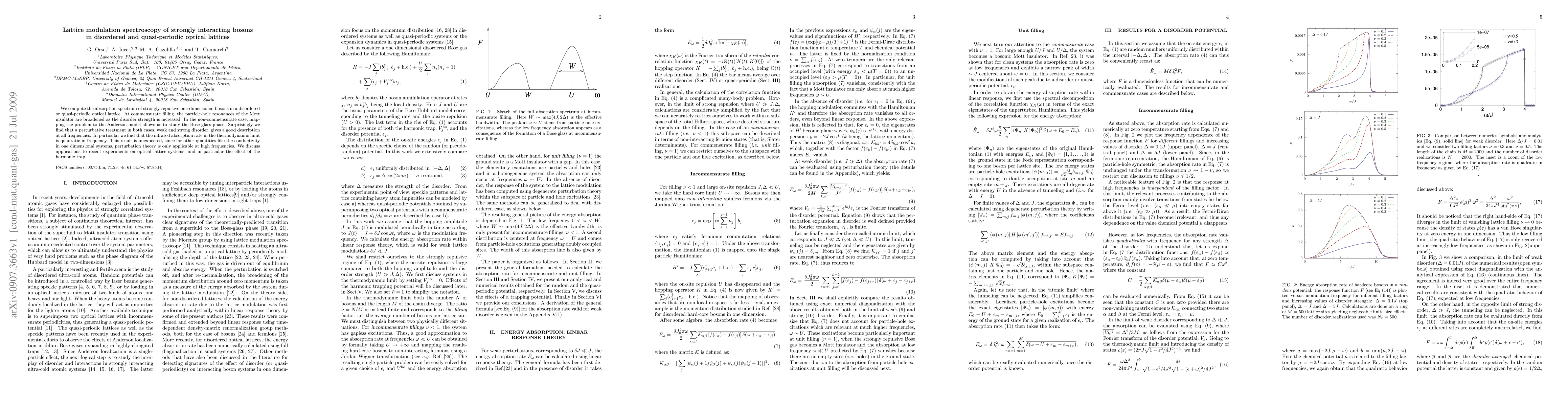 This paper investigates the absorption spectrum of strongly interacting bosons in disordered and quasi-periodic optical lattices, finding that perturbative treatments effectively describe the system's behavior across all frequencies, contrary to expectations for one-dimensional systems. The study also reveals a quadratic frequency dependence of the infrared absorption rate in the thermodynamic limit.