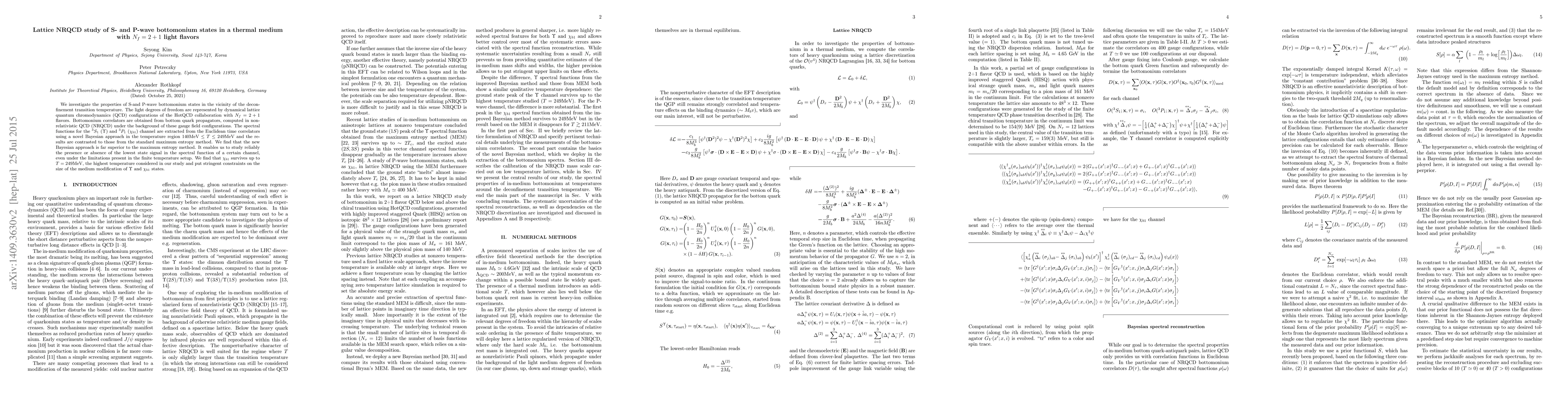 This study uses lattice NRQCD to analyze the properties of S- and P-wave bottomonium states near the deconfinement transition temperature, employing $N_f=2+1$ flavors of light quarks from HotQCD. A novel Bayesian approach reveals superior results over the standard maximum entropy method, showing that $\chi_{b1}$ persists up to the highest temperature considered ($T=249$ MeV) and providing stringent constraints on medium modifications for $\Upsilon$ and $\chi_{b1}$.