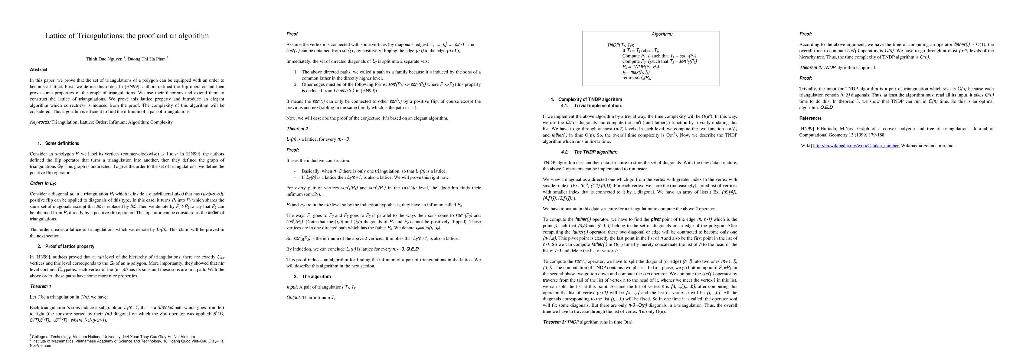 Researchers prove that triangulations of a polygon can be ordered to form a lattice, enabling an efficient algorithm for finding the infimum of two triangulations. An elegant algorithm is introduced with a complexity analysis, expanding the possibilities in geometric computing.