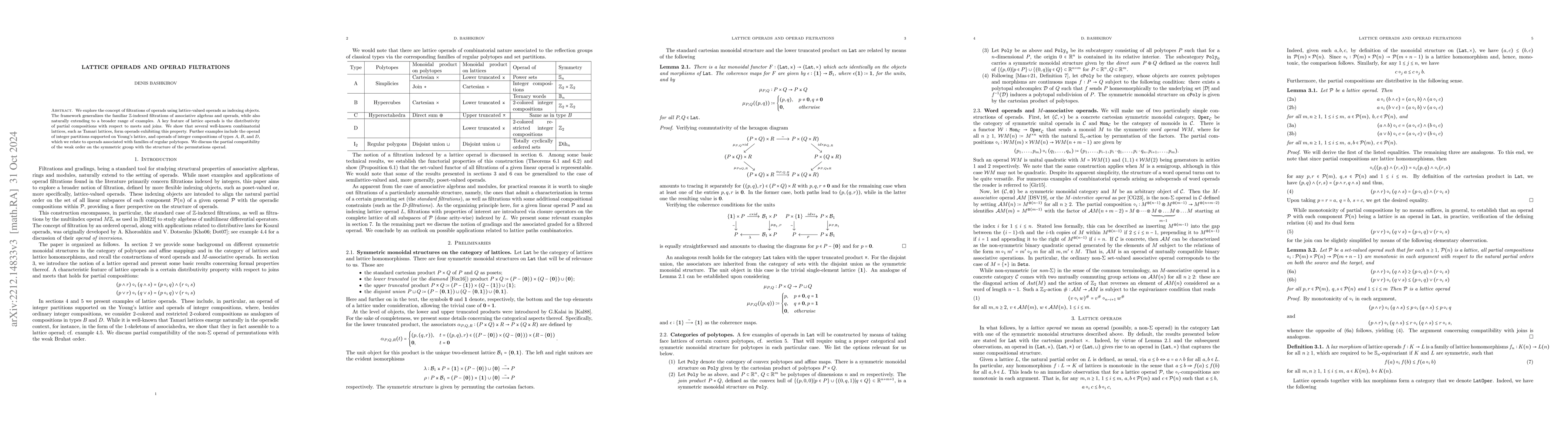 We elaborate on the notion of a filtration of an operad defined in terms of a lattice-valued operad serving as an indexing object. That covers ordinary integer-indexed filtrations of associative algebras and operads as a special case, yet the notion appears to be natural enough to encompass examples of other kind as well. The characteristic property of lattice operads is that of a certain distributivity of partial compositions with respect to meets and joins. We observe that some well-known families of lattices of combinatorial origin, such as Tamari lattices, assemble to operads subject to this particular property. Other examples include an operad of integer paritions supported on Young's lattice, operads of integer compositions of types $A, B$ and $D$, which we relate to operads of regular polytopes.