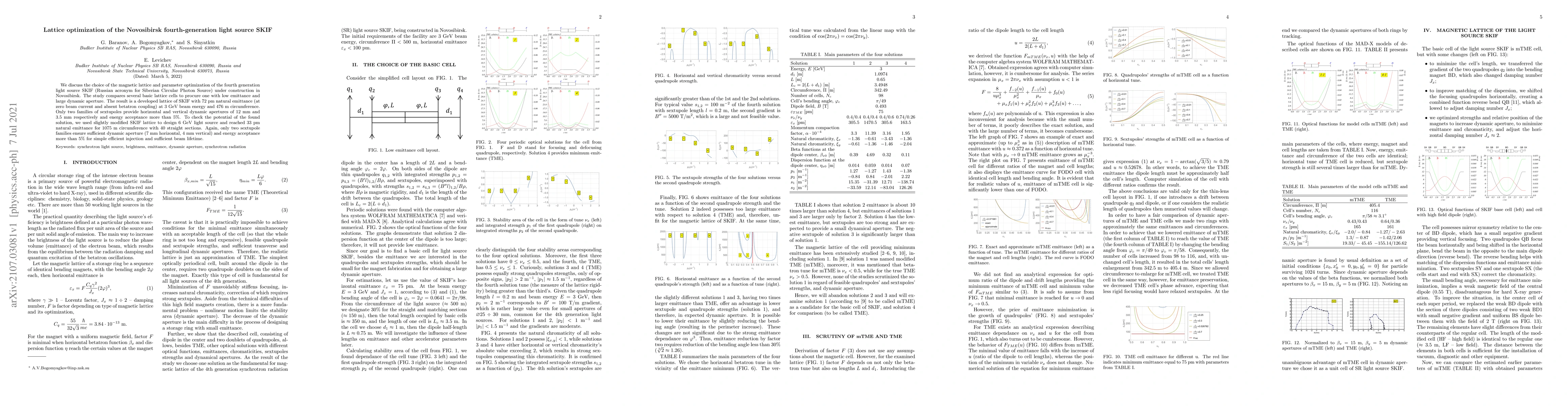 This paper optimizes the magnetic lattice for the SKIF fourth-generation light source in Novosibirsk, achieving a low emittance of 72 pm and a dynamic aperture of 12 mm horizontally and 3.5 mm vertically at 3 GeV. The study also extends the optimization to a 6 GeV version, achieving 33 pm emittance with similar aperture and energy acceptance.