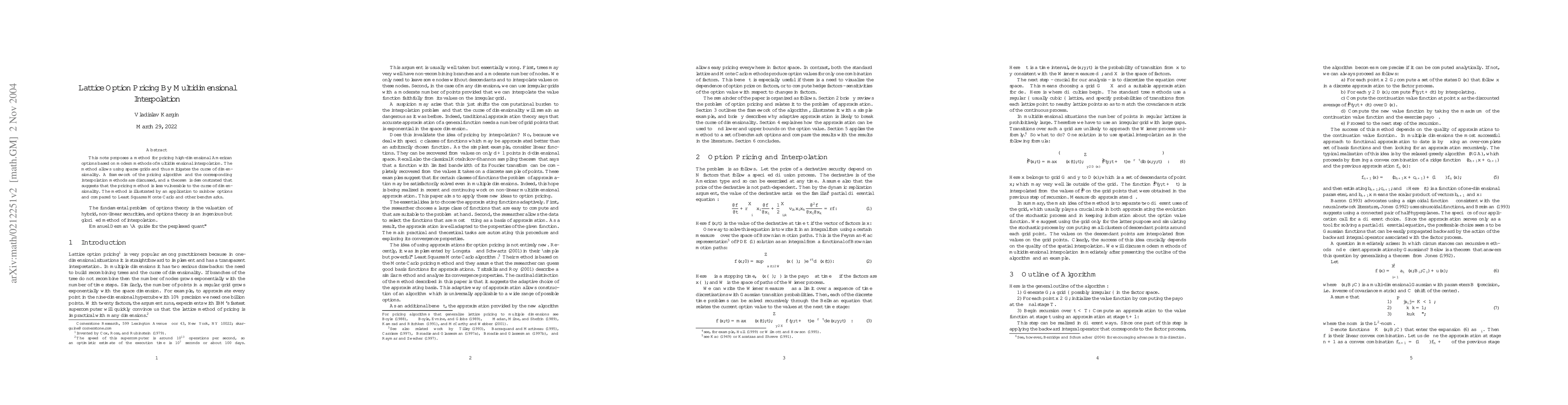 This note proposes a method for pricing high-dimensional American options based on modern methods of multidimensional interpolation. The method allows using sparse grids and thus mitigates the curse of dimensionality. A framework of the pricing algorithm and the corresponding interpolation methods are discussed, and a theorem is demonstrated that suggests that the pricing method is less vulnerable to the curse of dimensionality. The method is illustrated by an application to rainbow options and compared to Least Squares Monte Carlo and other benchmarks.