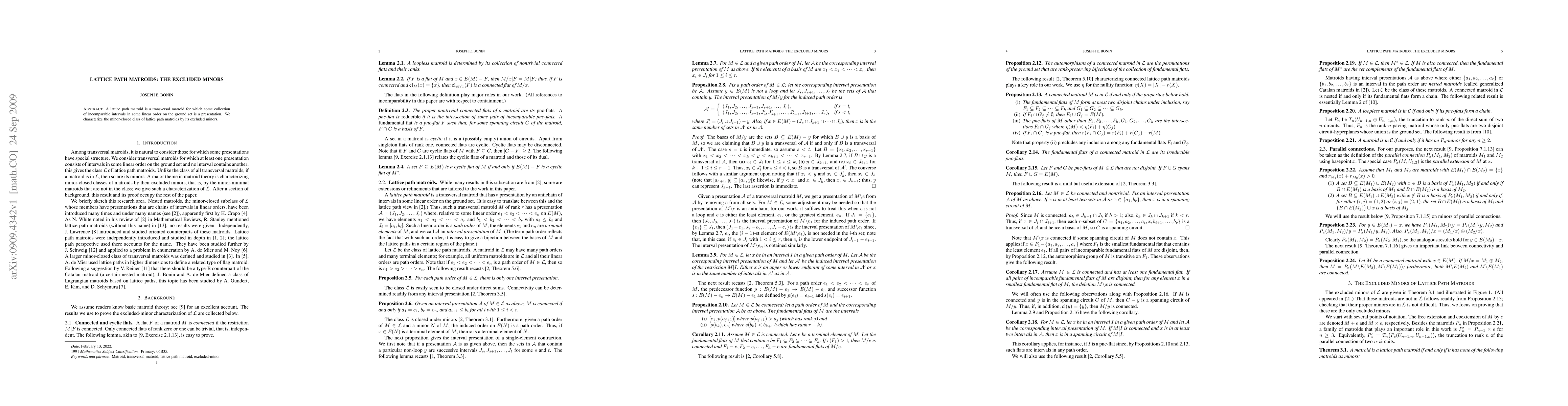This paper characterizes the minor-closed class of lattice path matroids by identifying a finite set of excluded minors, providing a complete understanding of their structure through these exclusions. The characterization aids in distinguishing lattice path matroids from other transversal matroids.