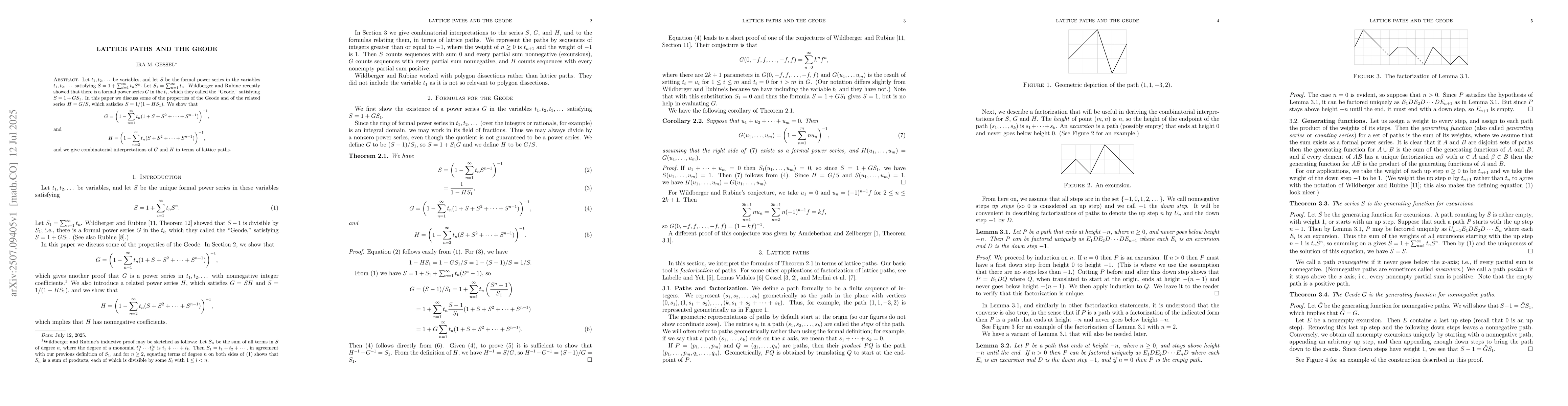 Let $t_1,t_2,\dots$ be variables, and let $S$ be the formal power series in the variables $t_1, t_2,\dots$ satisfying $S=1+\sum_{i=1}^\infty t_n S^n.$ Let $S_1 =\sum_{n=1}^\infty t_n$. Wildberger and Rubine recently showed that there is a formal power series $G$ in the $t_i$, which they called the Geode, satisfying $S=1+GS_1$. In this paper we discuss some of the properties of the Geode and of the related series $H=G/S$, which satisfies $S=1/(1-HS_1)$. We show that \begin{equation*} G=\biggl(1-\sum_{n=1}^\infty t_n (1+S+S^2+\cdots+S^{n-1})\biggr)^{-1}, \end{equation*} and \begin{equation*} H=\biggl( 1-\sum_{n=2}^\infty t_n (S+S^2+\cdots+S^{n-1})\biggr)^{-1}, \end{equation*} and we give combinatorial interpretations of $G$ and $H$ in terms of lattice paths.