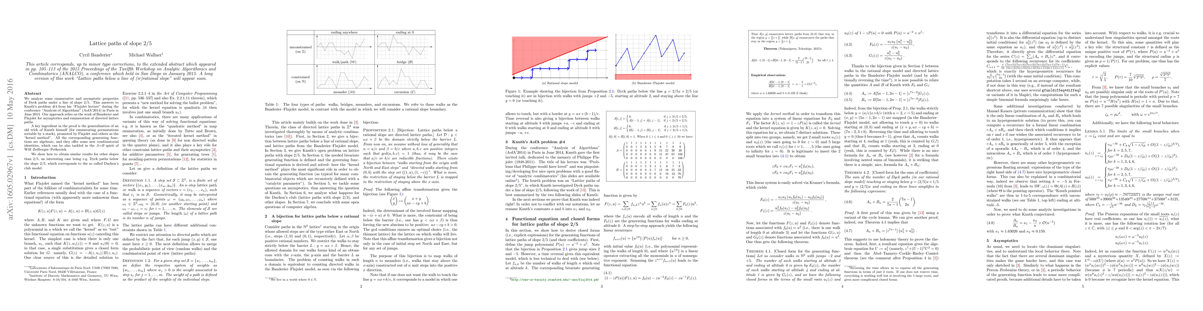 This research paper analyzes Dyck paths with a slope of 2/5, exploring their enumerative and asymptotic properties using generating functions and combinatorial identities. The findings have implications for understanding other lattice paths with different slopes.