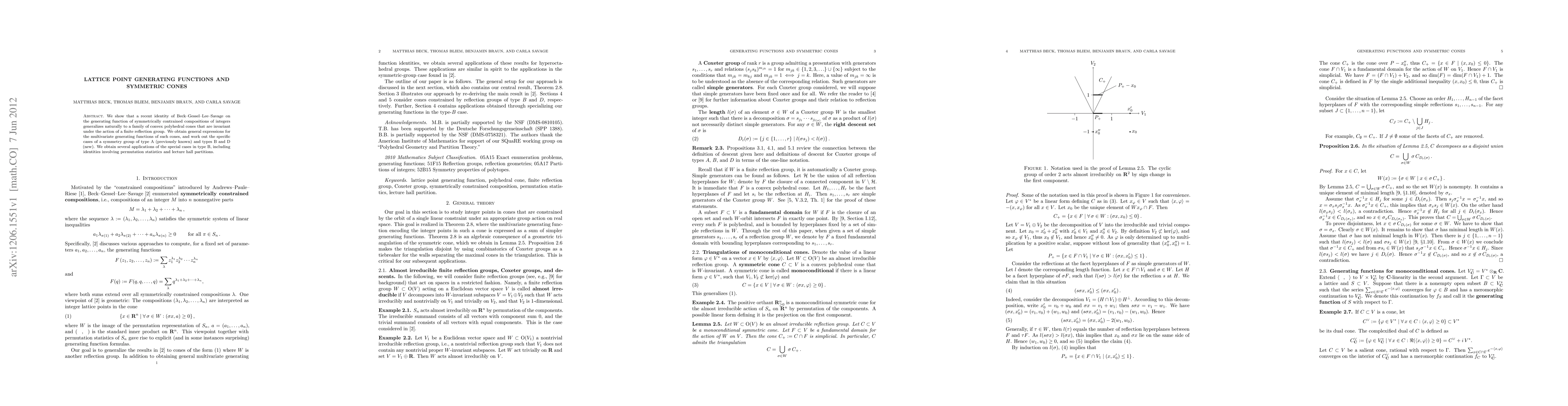 We show that a recent identity of Beck-Gessel-Lee-Savage on the generating function of symmetrically contrained compositions of integers generalizes naturally to a family of convex polyhedral cones that are invariant under the action of a finite reflection group. We obtain general expressions for the multivariate generating functions of such cones, and work out the specific cases of a symmetry group of type A (previously known) and types B and D (new). We obtain several applications of the special cases in type B, including identities involving permutation statistics and lecture hall partitions.