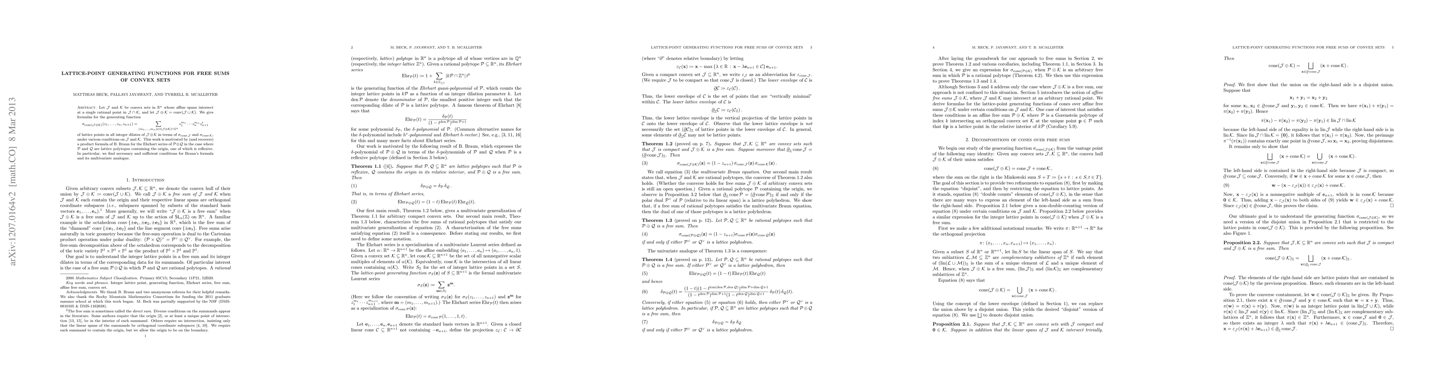 This paper provides generating functions for lattice points in free sums of convex sets, deriving formulas in terms of the generating functions of the original sets under specific conditions. It extends a product formula by Braun for the Ehrhart series of lattice polytopes, establishing necessary and sufficient conditions for its application.