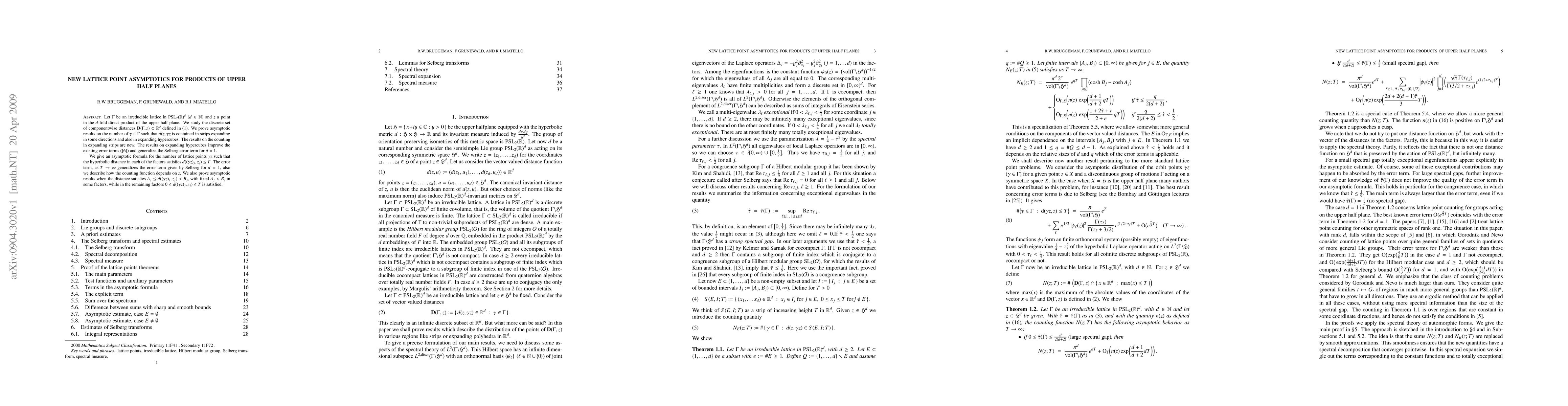 Let $\Gamma$ be an irreducible lattice in $\PSL_2(\RR)^d$ ($d\in\NN$) and $z$ a point in the $d$-fold direct product of the upper half plane. We study the discrete set of componentwise distances ${\bf D}(\Gm,z)\subset \RR^d$ defined in (1). We prove asymptotic results on the number of $\gm\in\Gm$ such that $d(z,\gamma z$ is contained in strips expanding in some directions and also in expanding hypercubes. The results on the counting in expanding strips are new. The results on expanding hypercubes % improve the error terms improve the existing error terms (by Gorodnick and Nevo) and generalize the Selberg error term for $d=1$. We give an asymptotic formula for the number of lattice points $\gamma z$ such that the hyperbolic distance in each of the factors satisfies $d((\gamma z)_j, z_j)\le T$. The error term, as $T \to \infty$ generalizes the error term given by Selberg for $d=1$, also we describe how the counting function depends on $z$. We also prove asymptotic results when the distance satisfies $A_j \le d((\gamma z)_j, z_j) < B_j$, with fixed $A_j < B_j$ in some factors, while in the remaining factors $0 \le d((\gamma z)_j, z_j) \le T$ is satisfied.