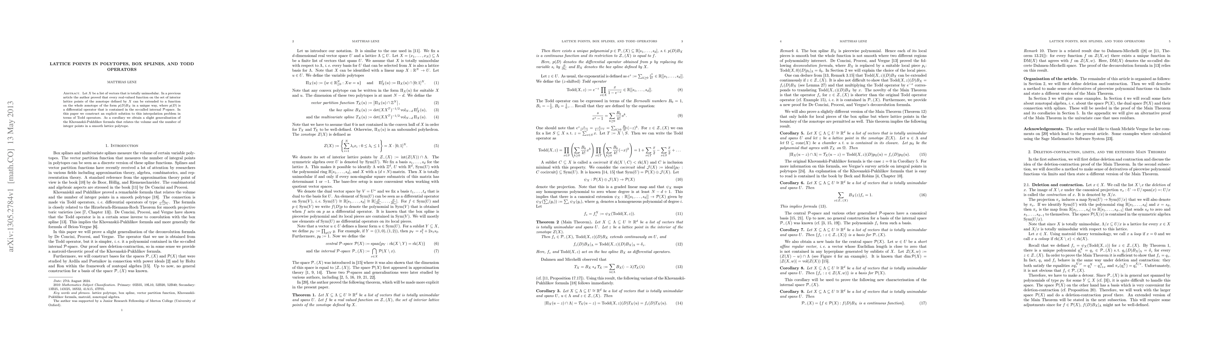 Let $X$ be a list of vectors that is totally unimodular. In a previous article the author proved that every real-valued function on the set of interior lattice points of the zonotope defined by $X$ can be extended to a function on the whole zonotope of the form $p(D)B_X$ in a unique way, where $p(D)$ is a differential operator that is contained in the so-called internal $\Pcal$-space. In this paper we construct an explicit solution to this interpolation problem in terms of Todd operators. As a corollary we obtain a slight generalisation of the Khovanskii-Pukhlikov formula that relates the volume and the number of integer points in a smooth lattice polytope.