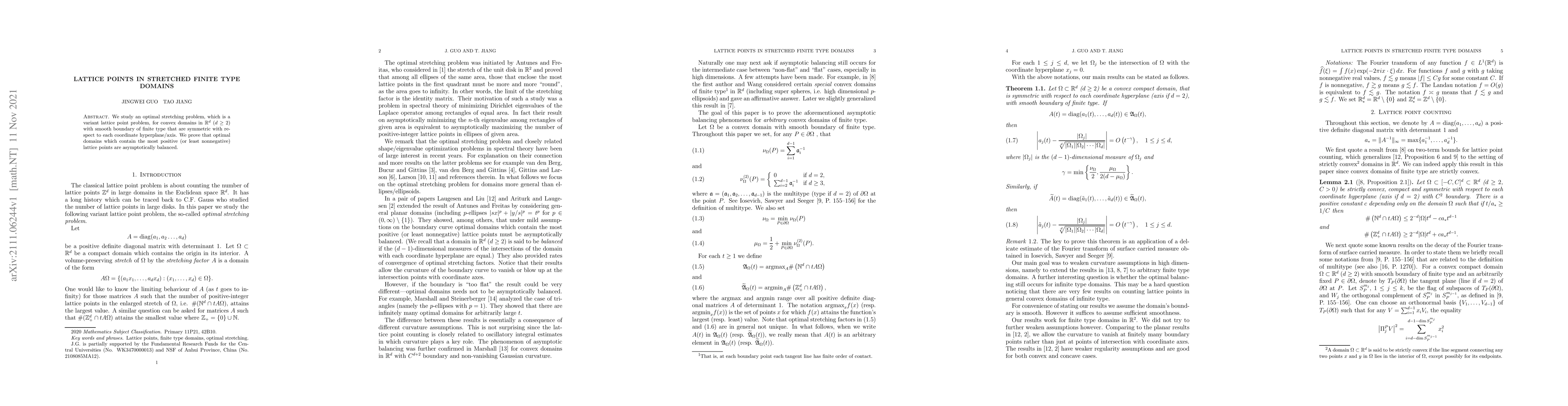The paper presents a detailed proof of asymptotic properties of lattice points in stretched finite type domains, extending previous work on the subject.