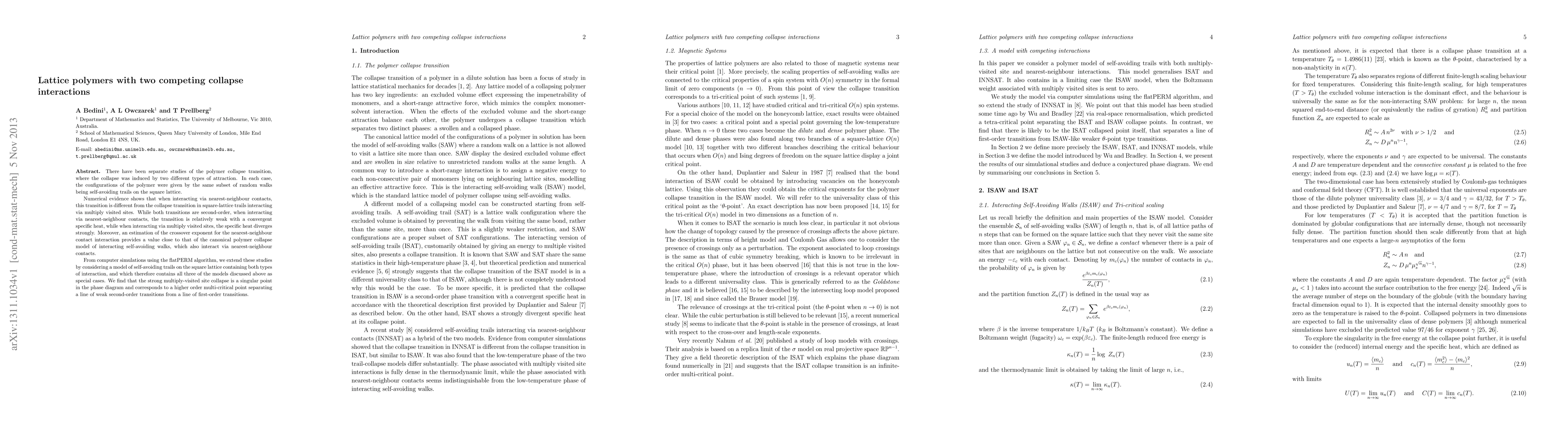 This paper investigates lattice polymers with two competing collapse interactions, finding that the transition types differ significantly based on interaction type. Simulations reveal a multi-critical point where the strong collapse interaction leads to first-order transitions, contrasting with the weak, second-order transitions of the nearest-neighbour interaction.